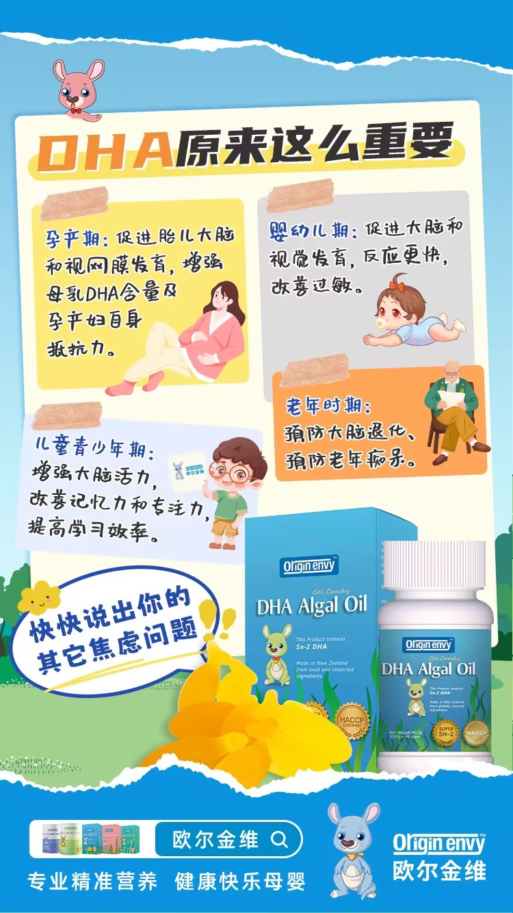 【买二送一/四件6.5折】欧尔金维DHA/维生素D/有机海藻钙/无乳益生菌粉 【欧尔金维系列满520送1瓶防晒喷雾,满666送肤乐霜】【橙妈推荐】