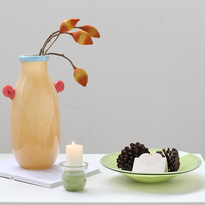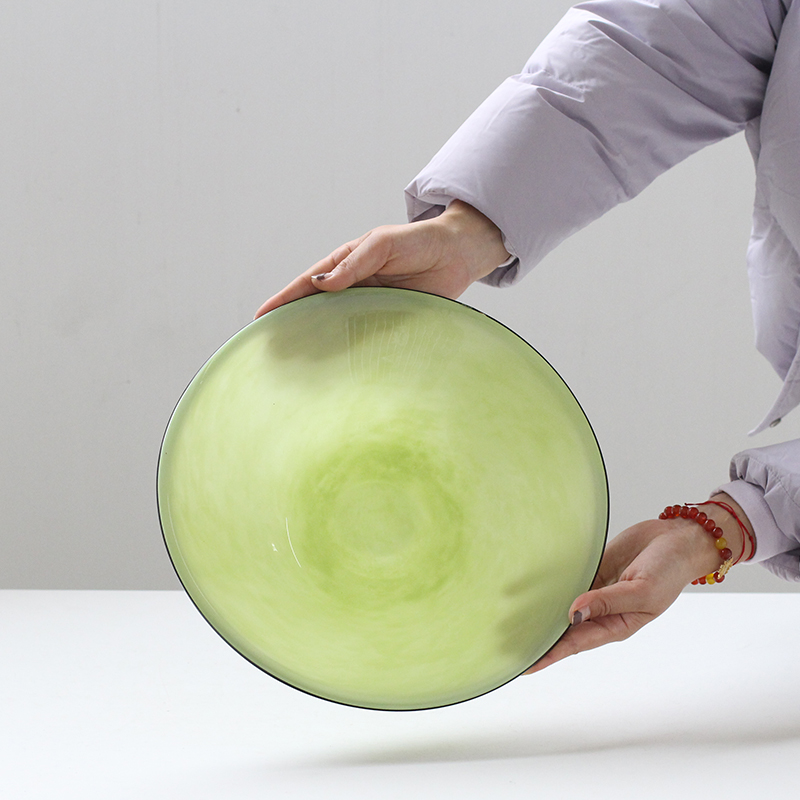 北欧风瓷粉黑边敞口花瓶鲜花餐桌电视柜简约创意手工家用玻璃果盘