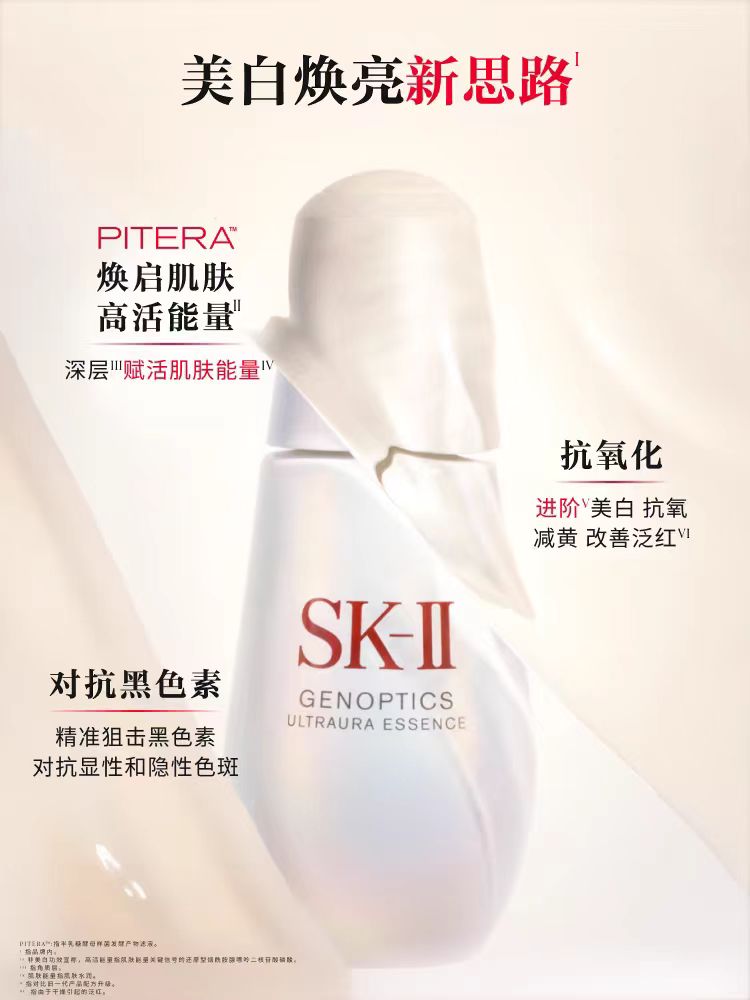 SK-II光蕴臻采小灯泡美白淡斑精华50ml 赠大红瓶面霜15ml*4