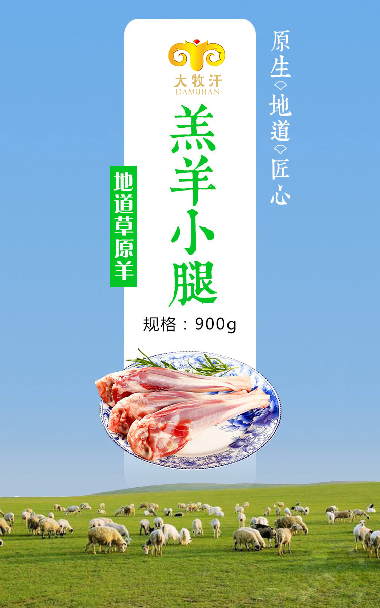 大牧汗 羔羊带骨羊小腿 900g/袋