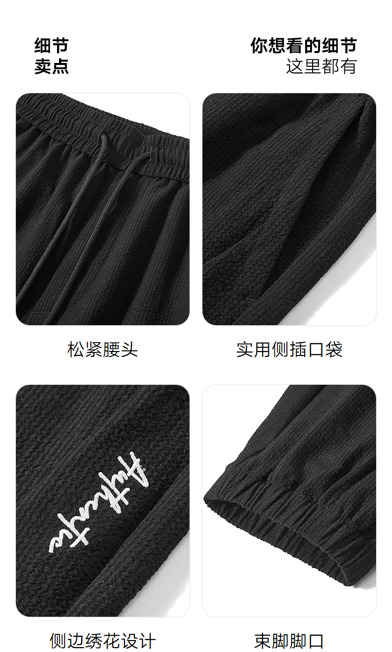2025年夏季热卖GXG男装男士休闲束脚裤黑色宽松男士长裤
