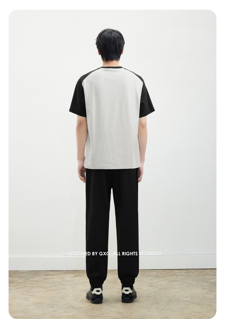 GXG男装 圆领卫衣雪尼尔撞色拼接长袖内搭上衣 2025秋季新品