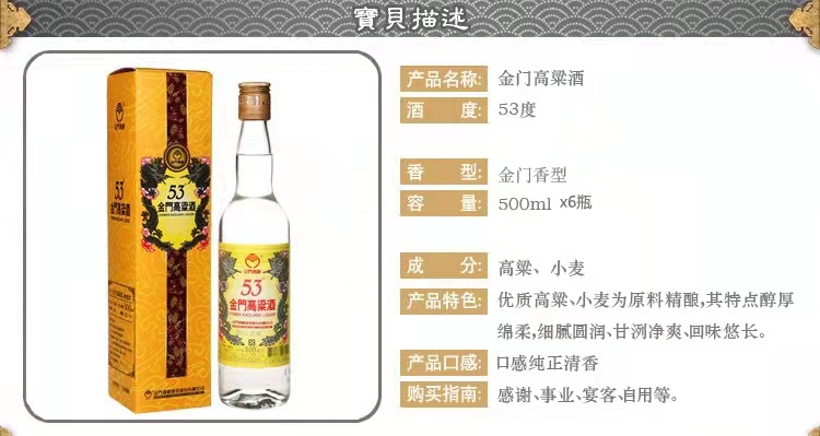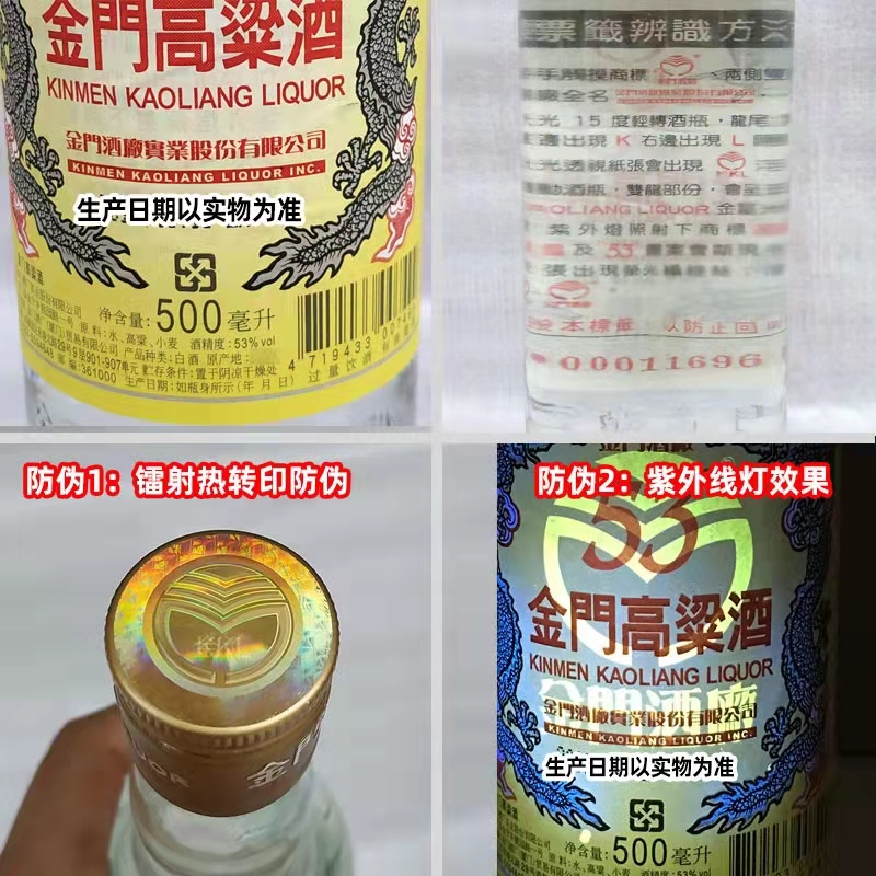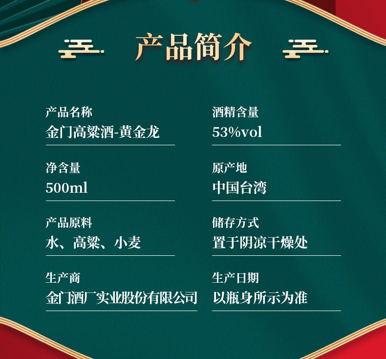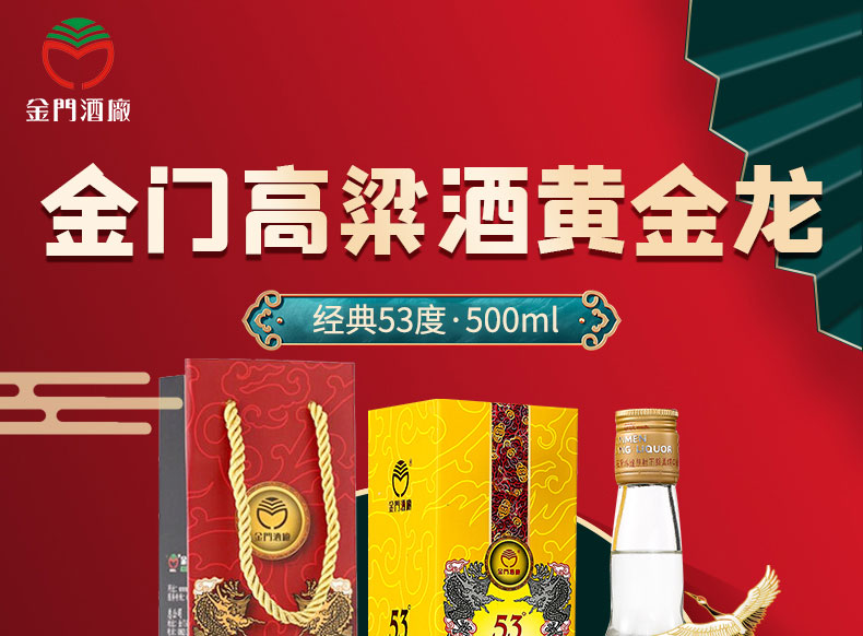 【整箱特惠】金门高粱酒黄金龙53度 500ml*6(内含6个礼品袋)