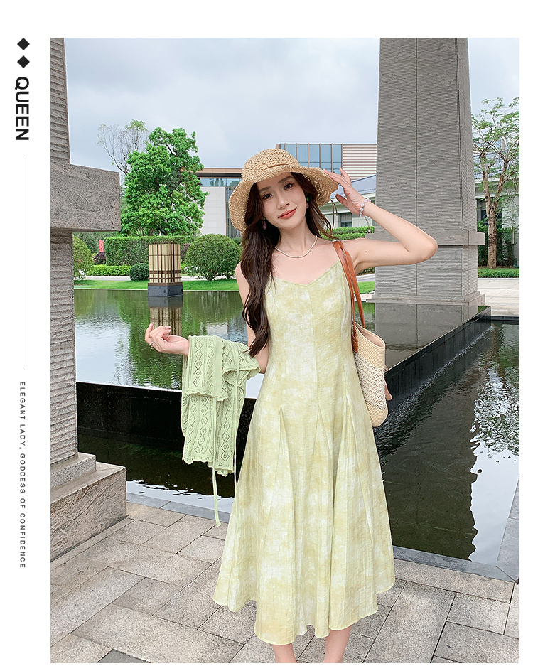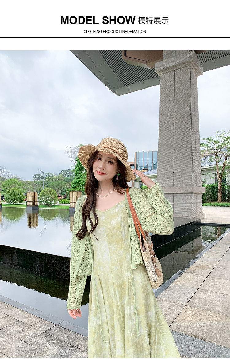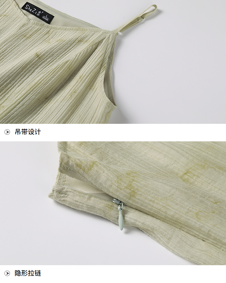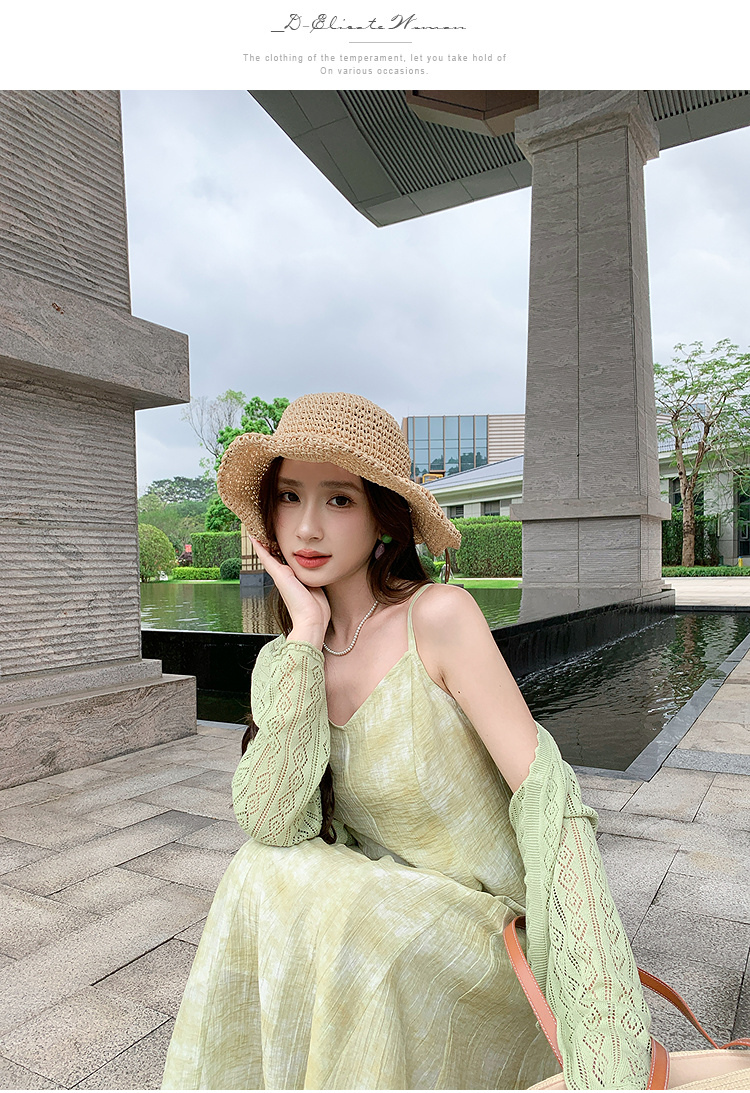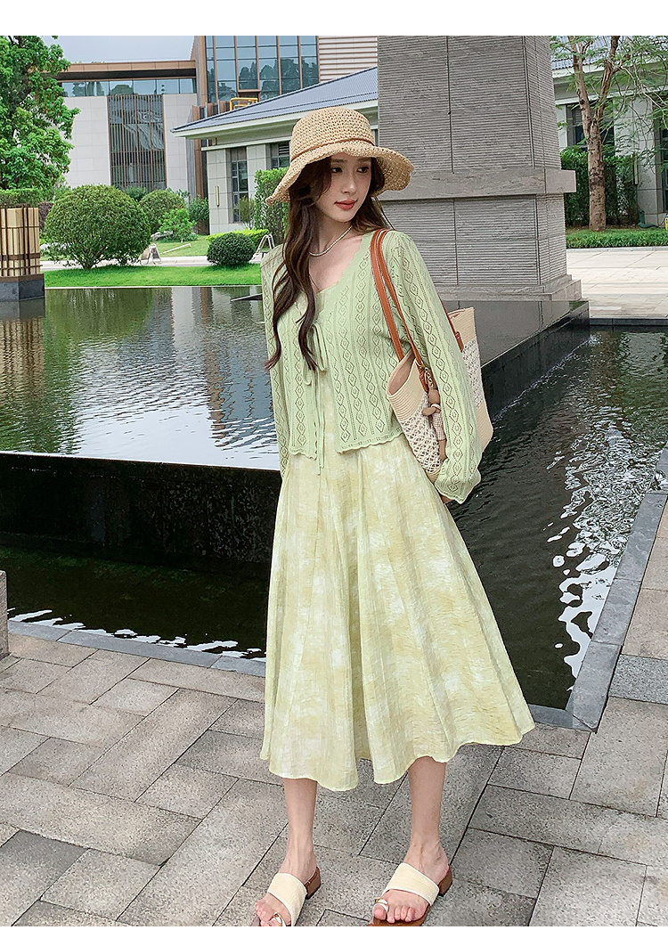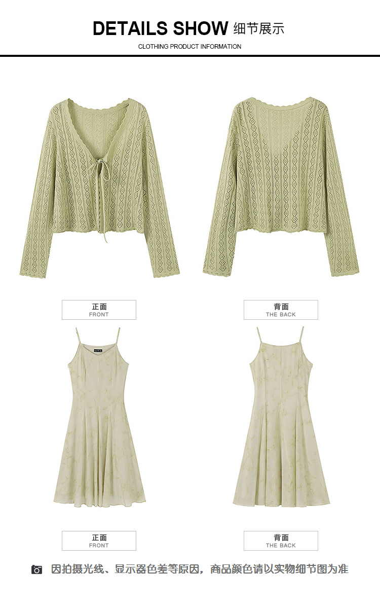 奢姿大码女装夏季胖妹妹镂空针织衫吊带小V领清新套装连衣裙9952953216AB