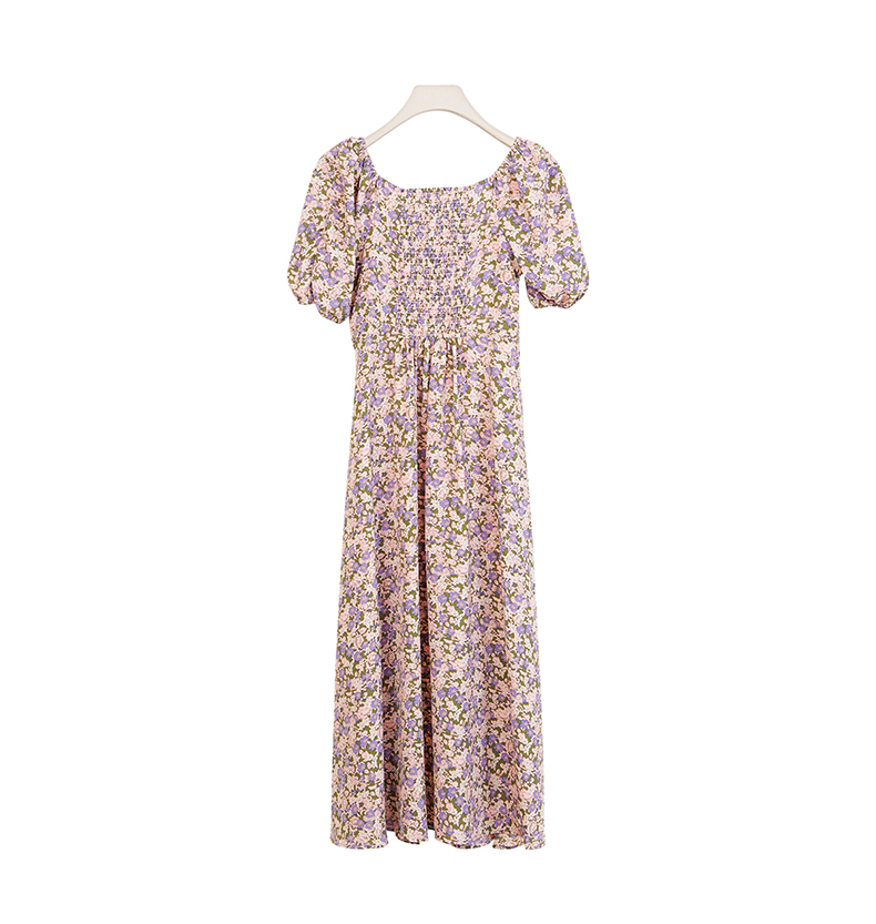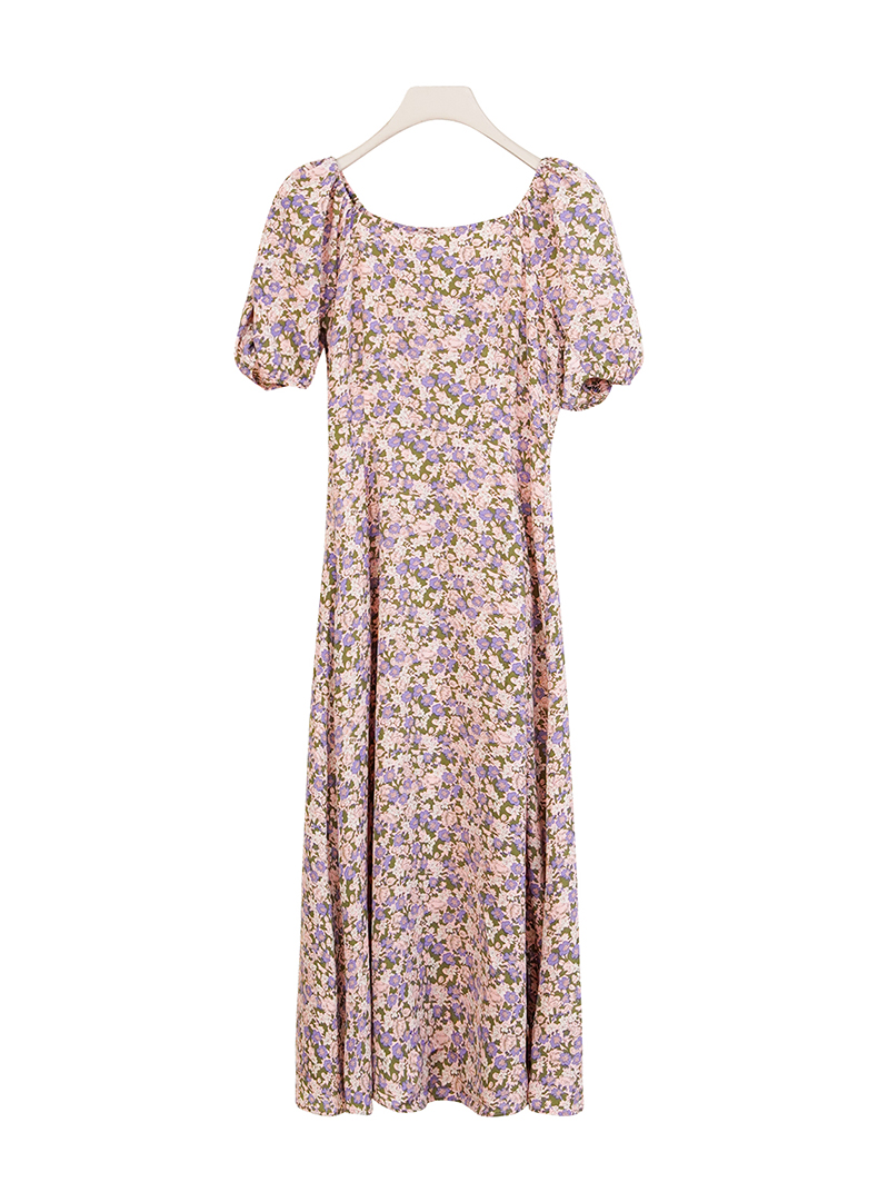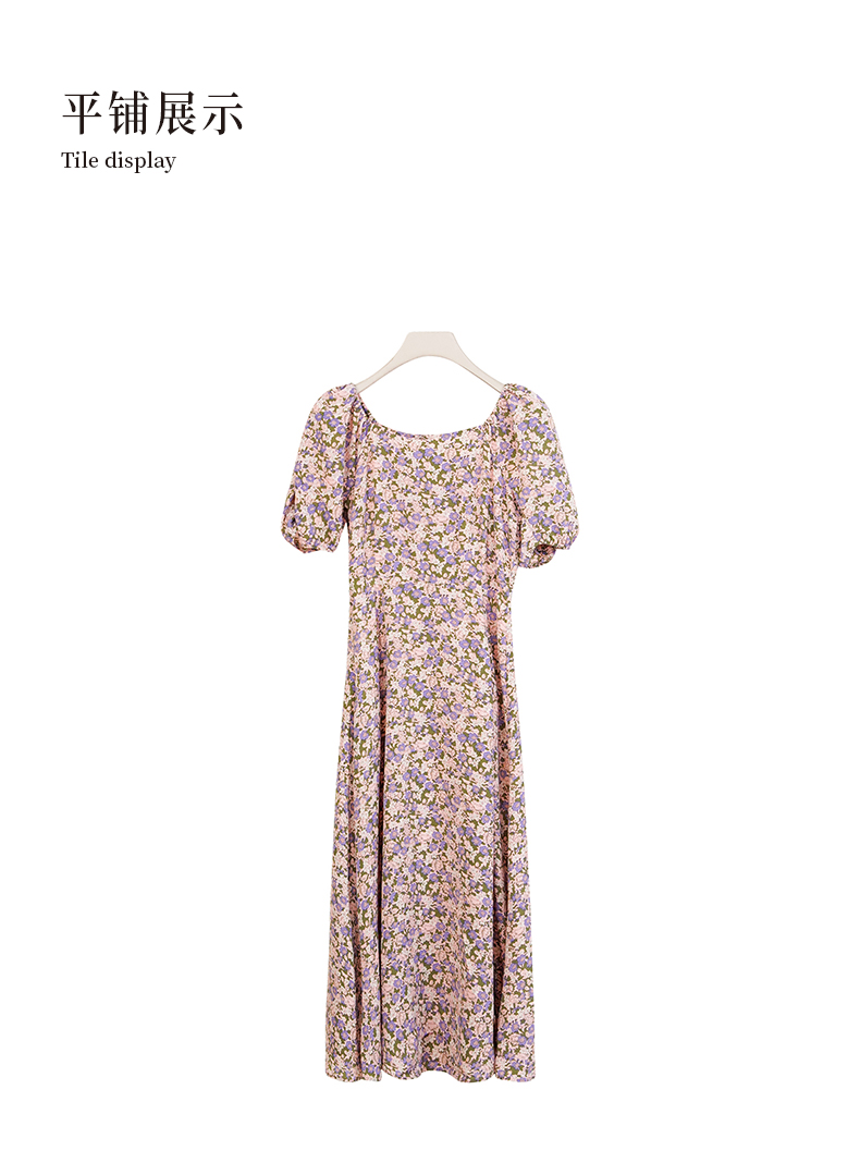 oldcolour商场同款春秋款方领气质碎花短袖连衣裙女P22101236
