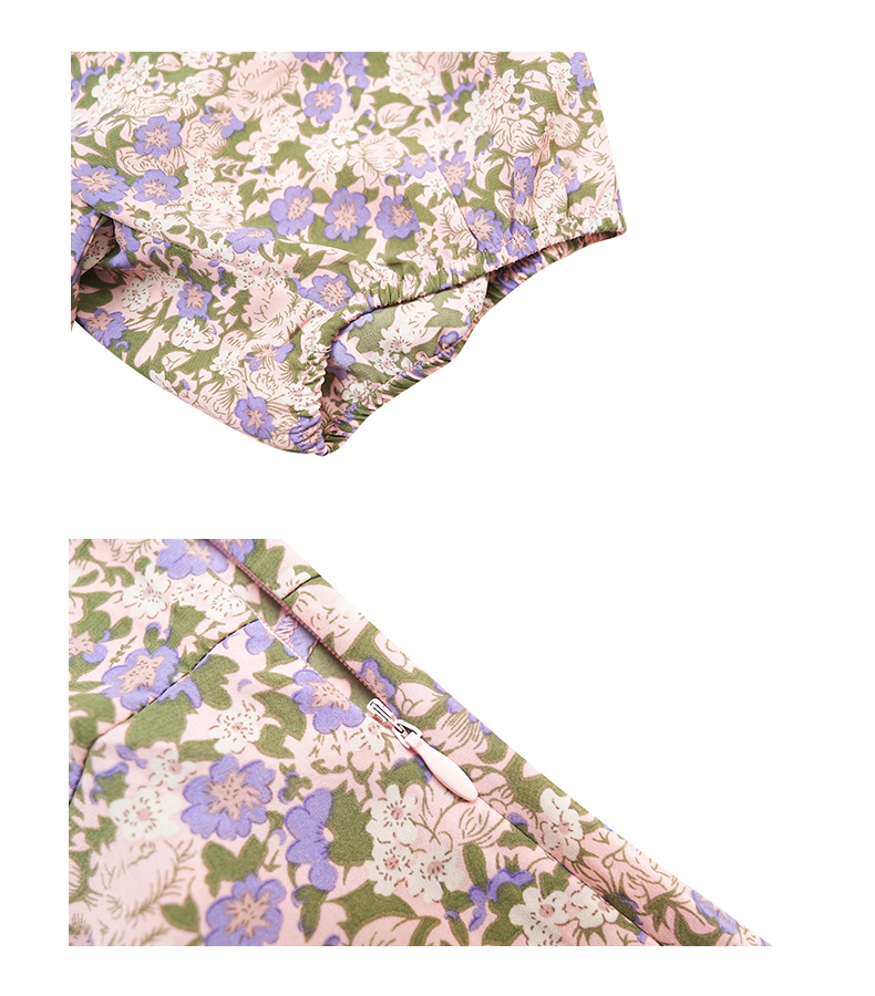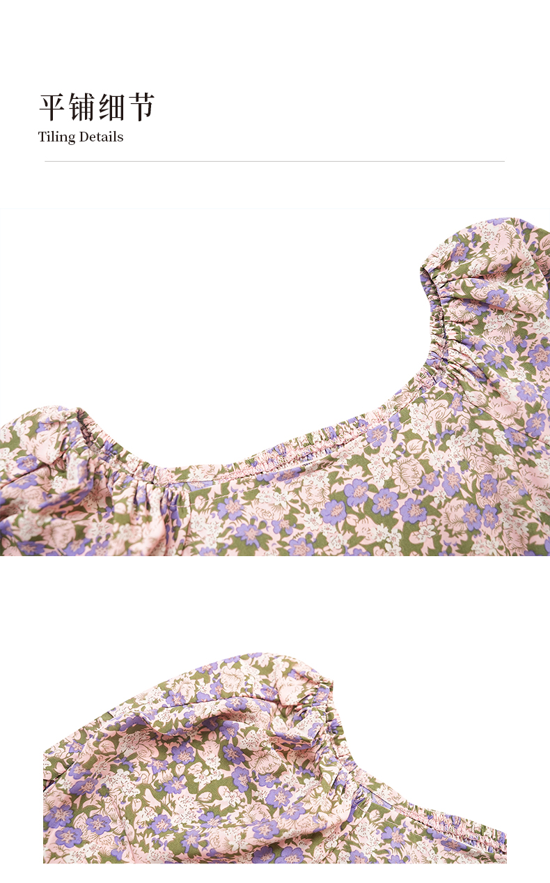 oldcolour夏季新款法式泡泡袖V领短款碎花衬衫女上衣P25012541