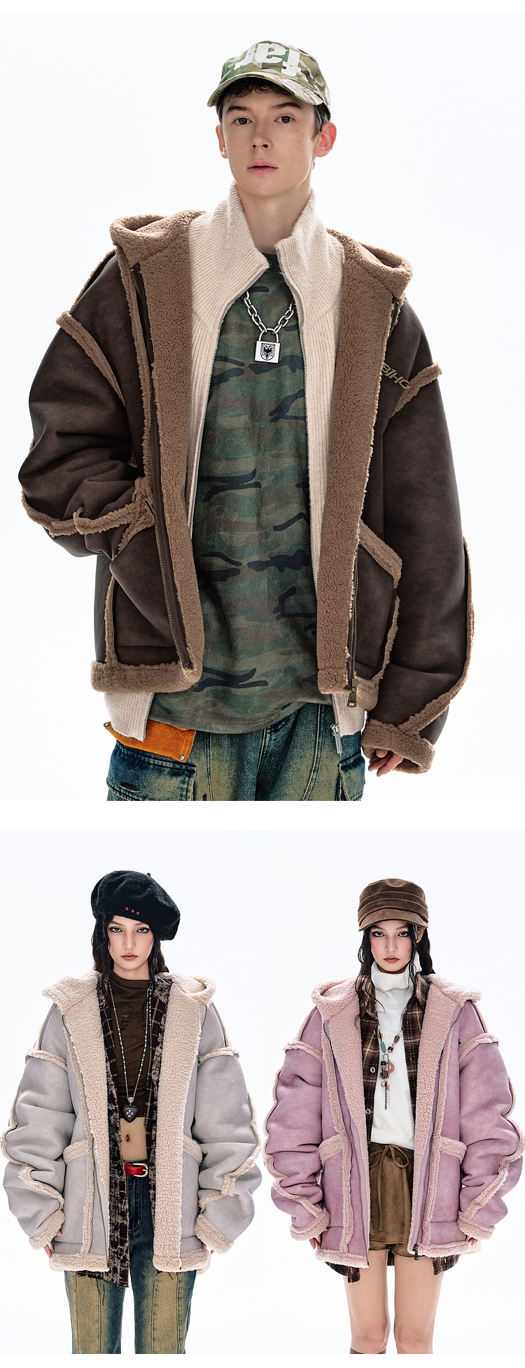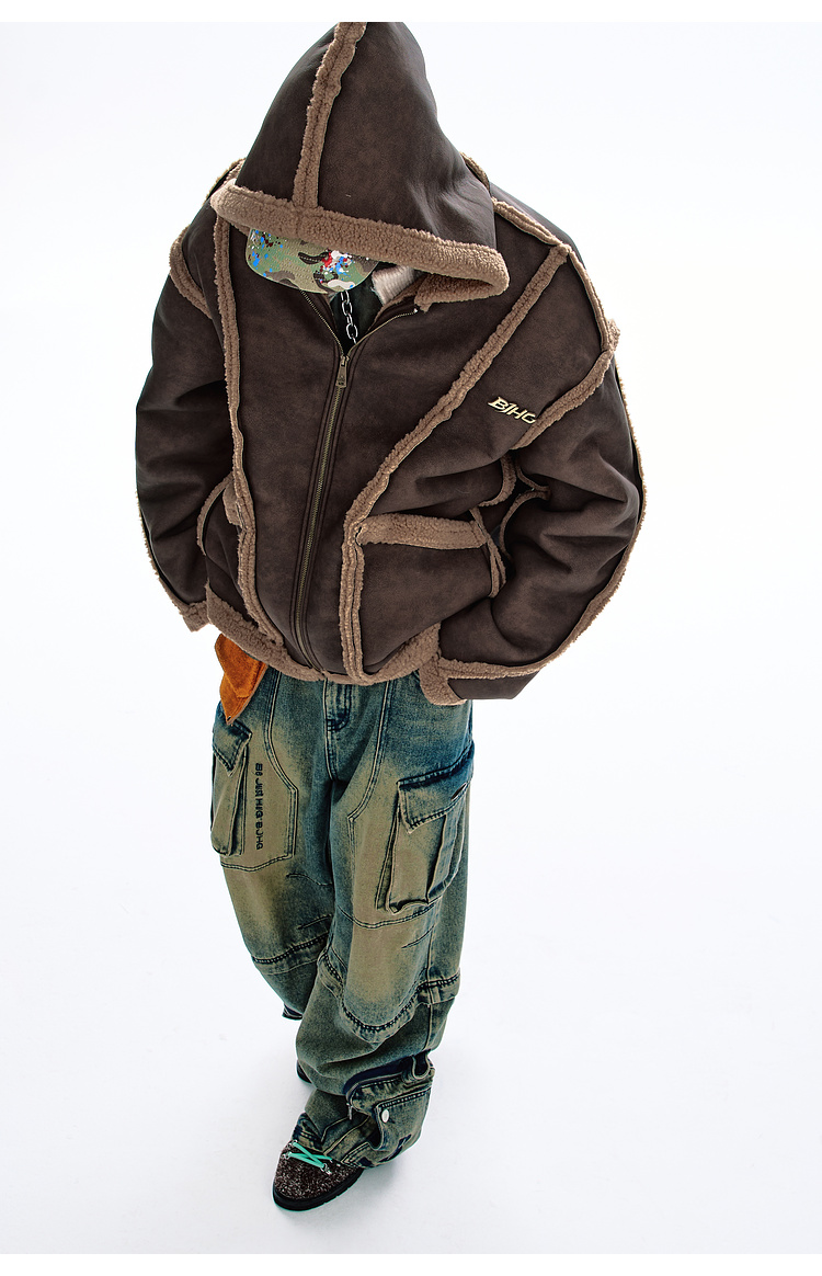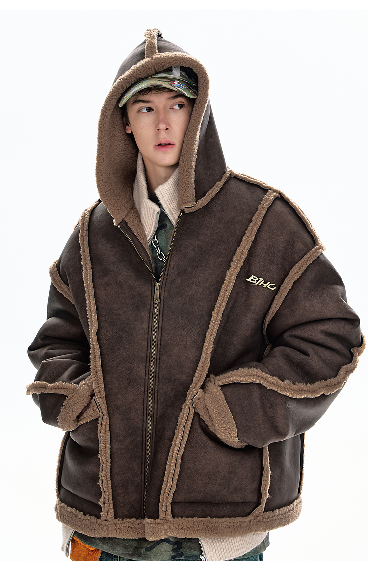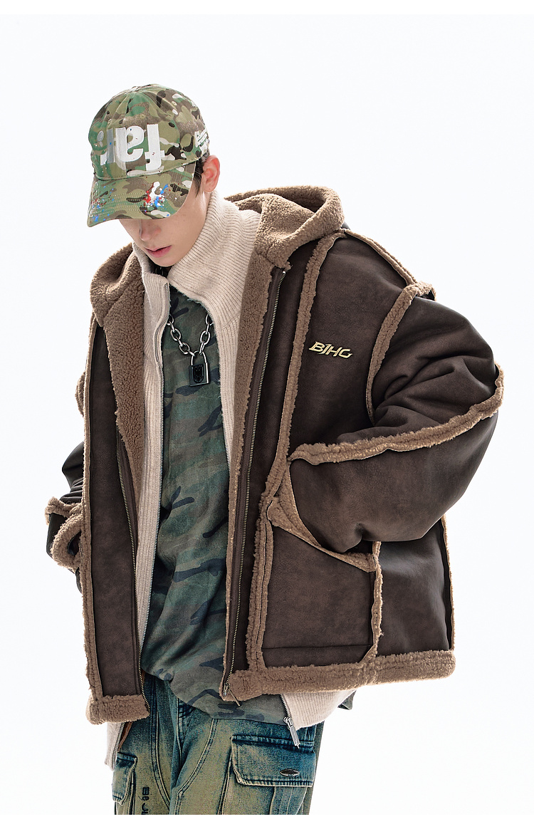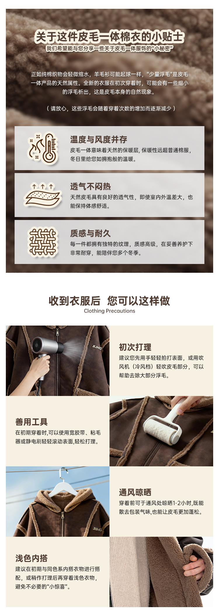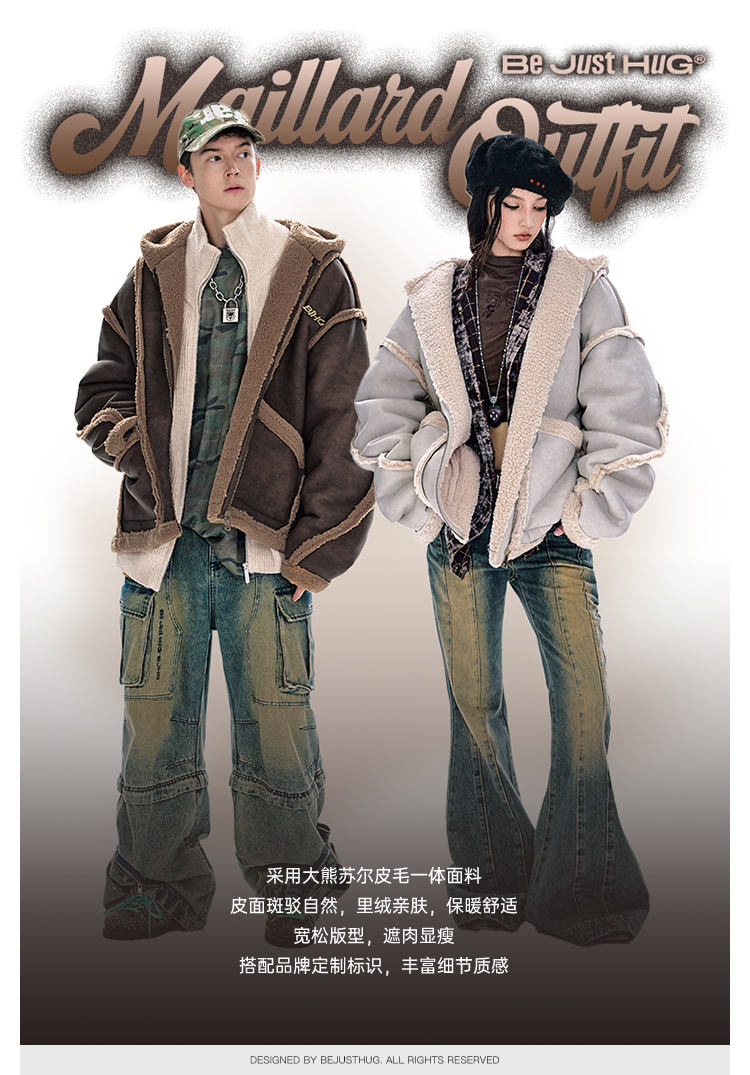 BJHG不计后果美拉德棉服外套男款冬季皮毛一体加厚保暖连帽棉衣女
