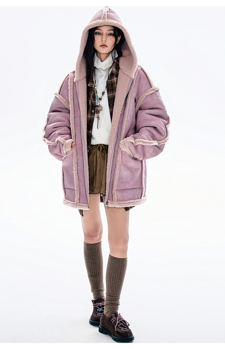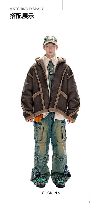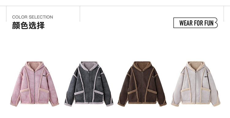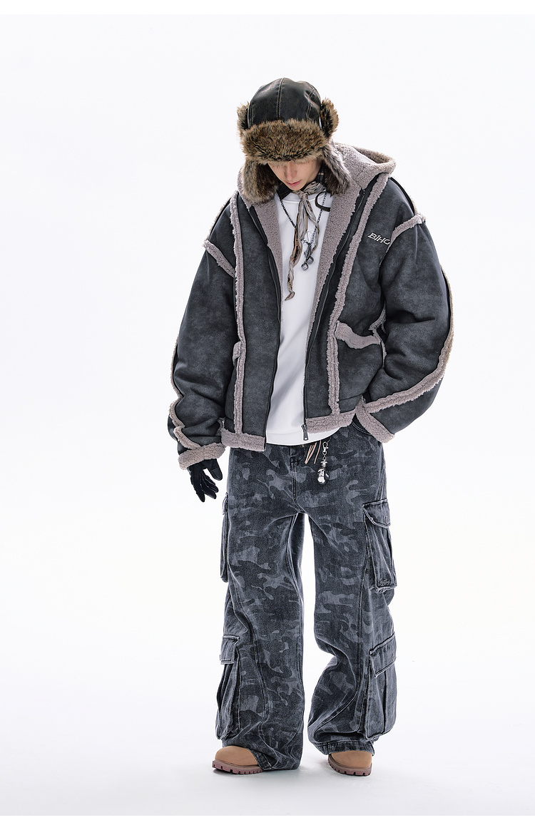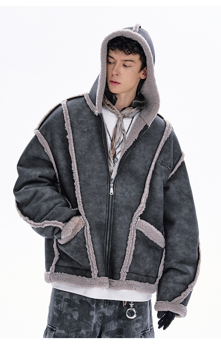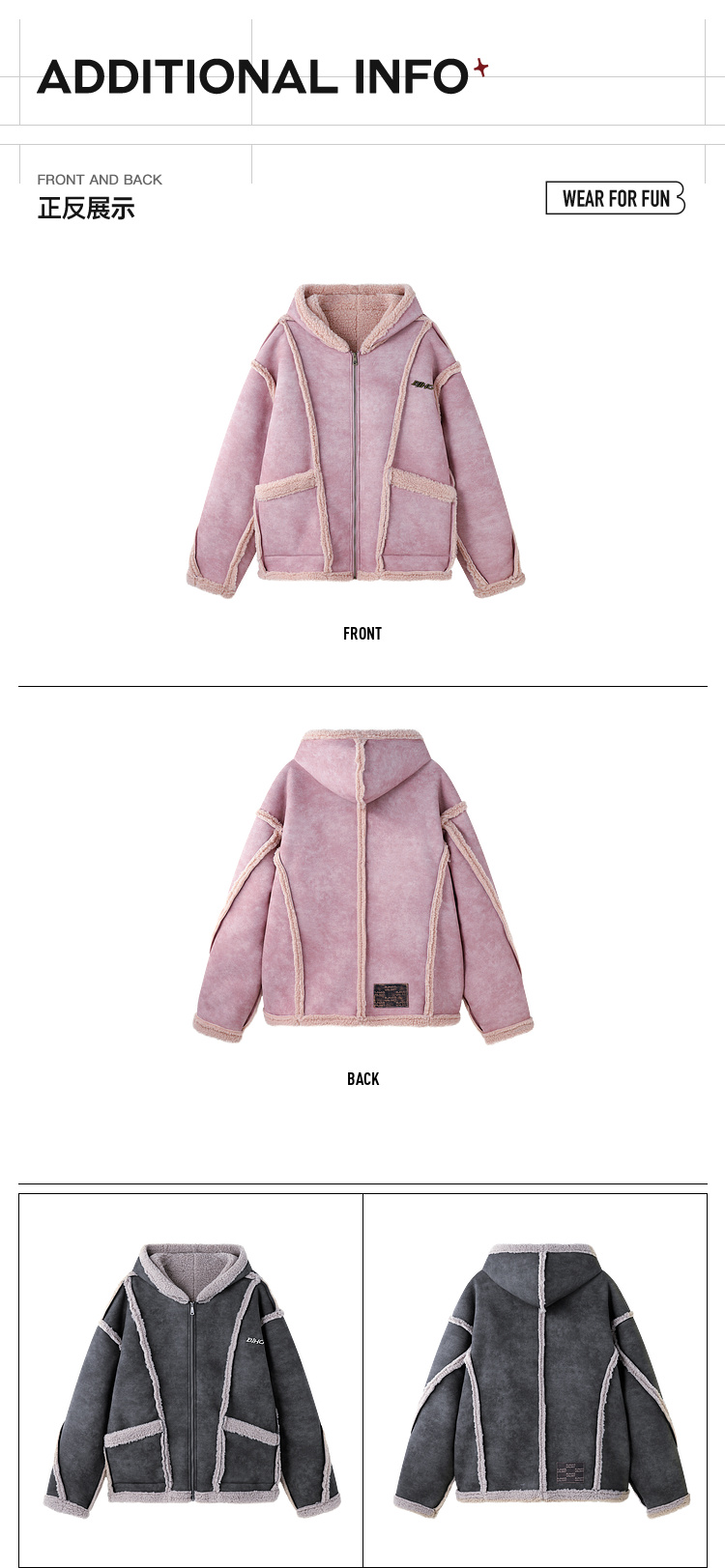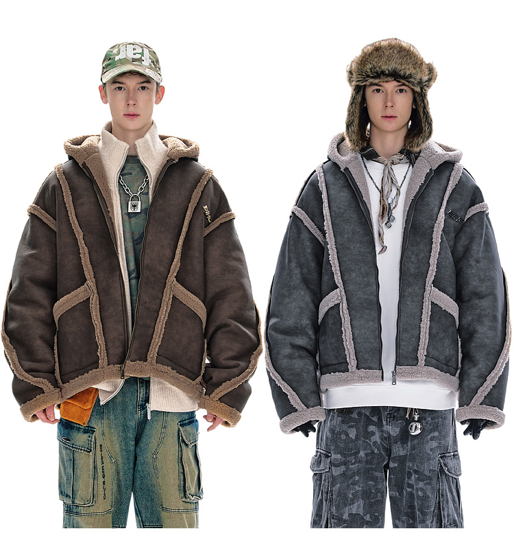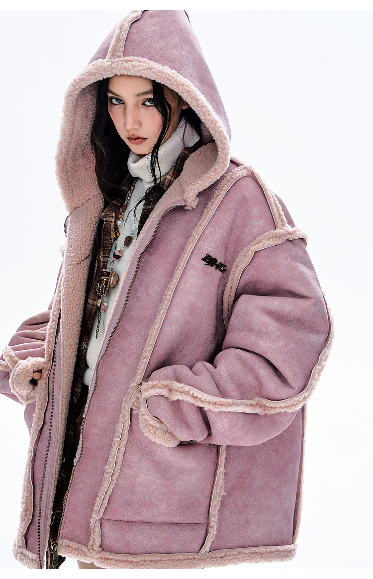 BJHG不计后果美拉德棉服外套男款冬季皮毛一体加厚保暖连帽棉衣女