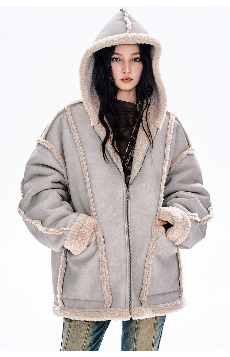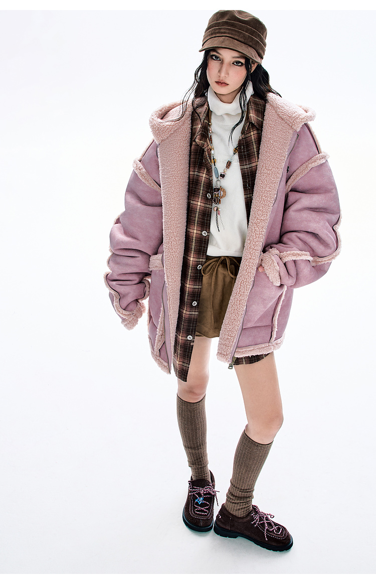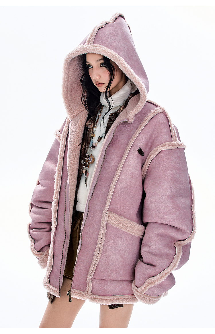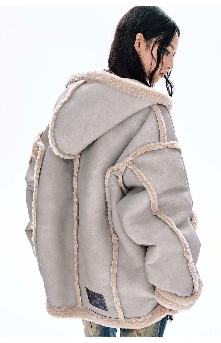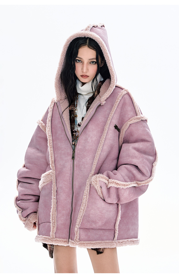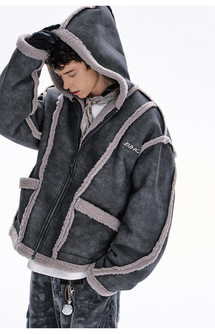 BJHG不计后果美拉德棉服外套男款冬季皮毛一体加厚保暖连帽棉衣女