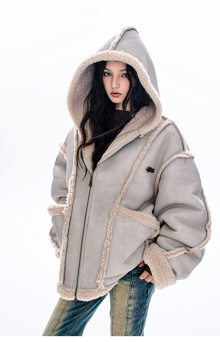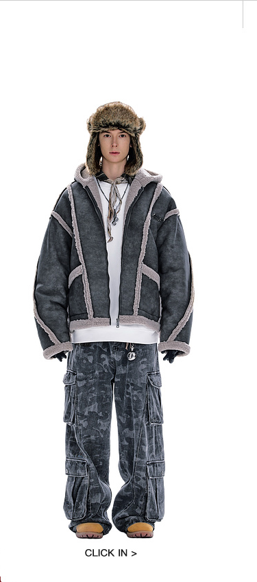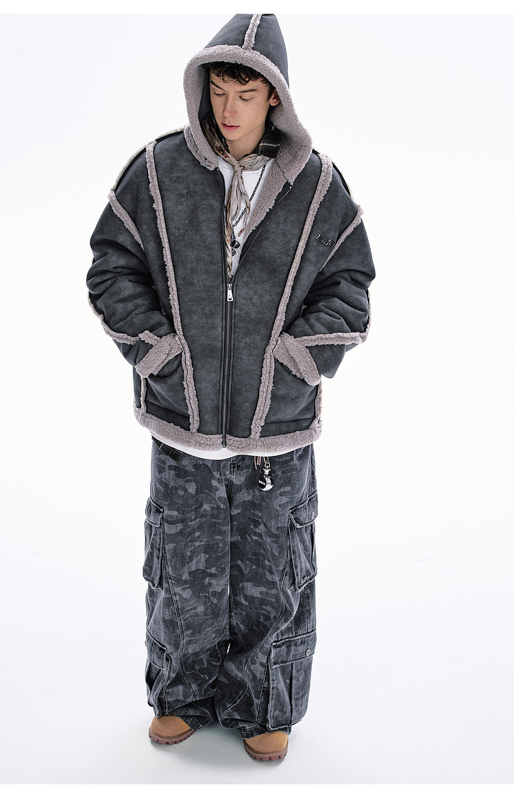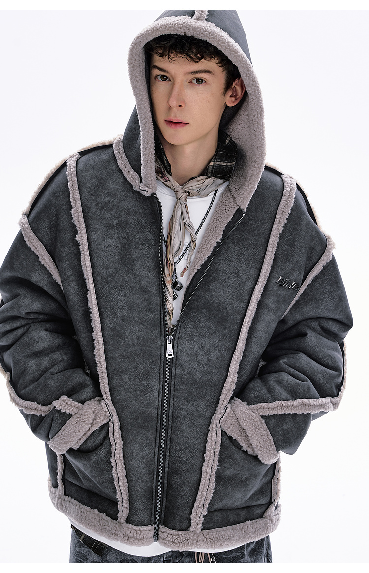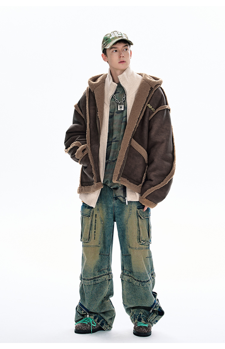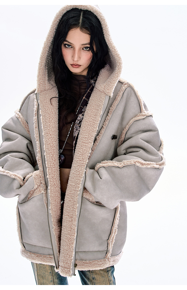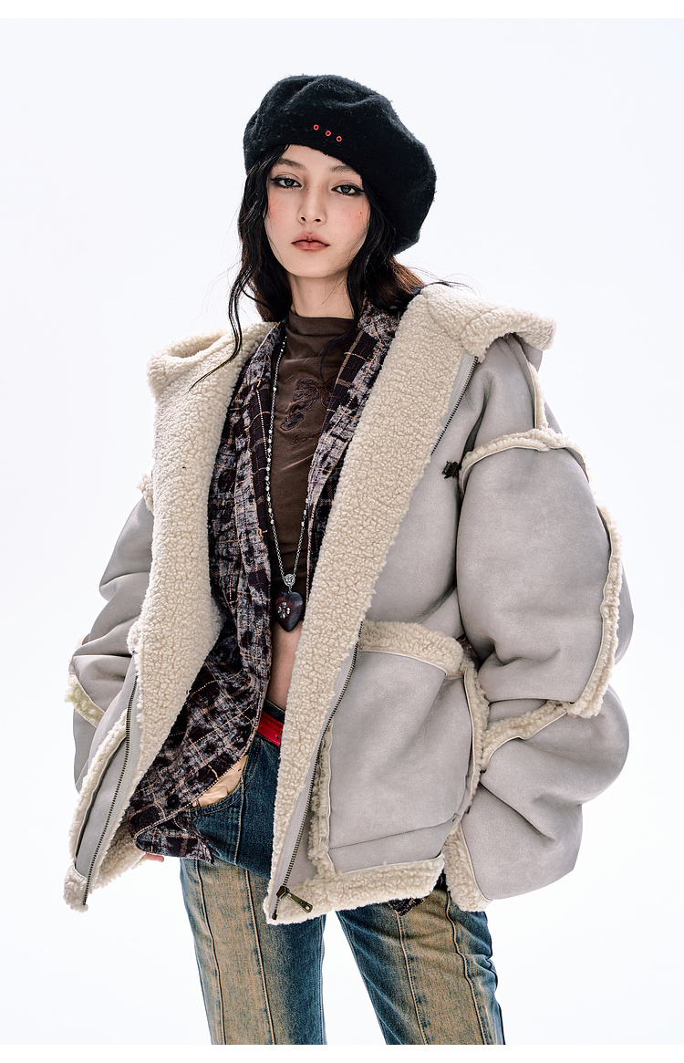 BJHG不计后果美拉德棉服外套男款冬季皮毛一体加厚保暖连帽棉衣女