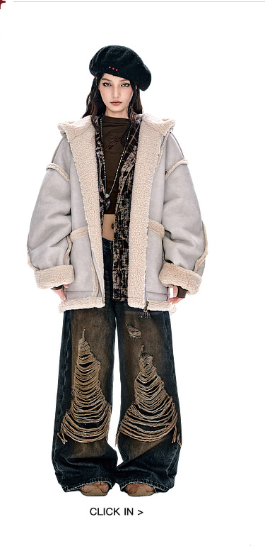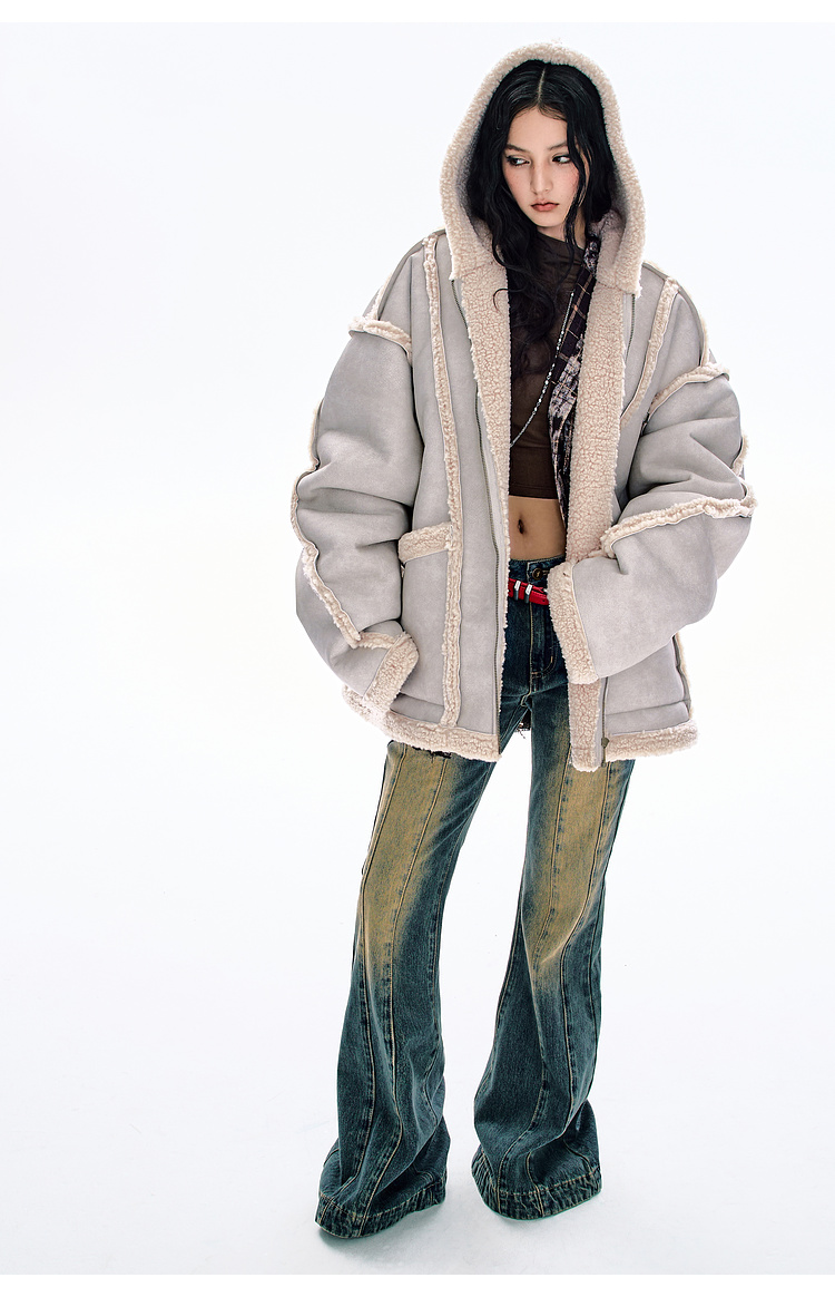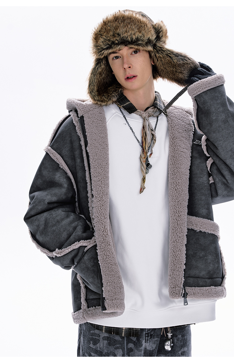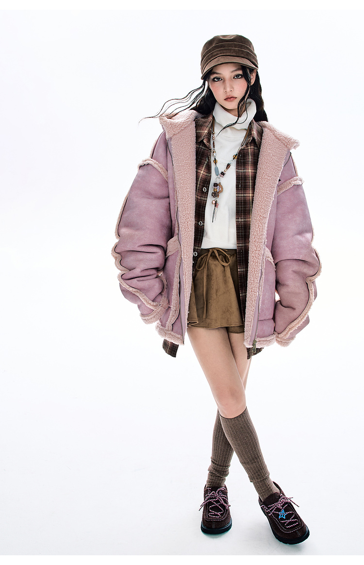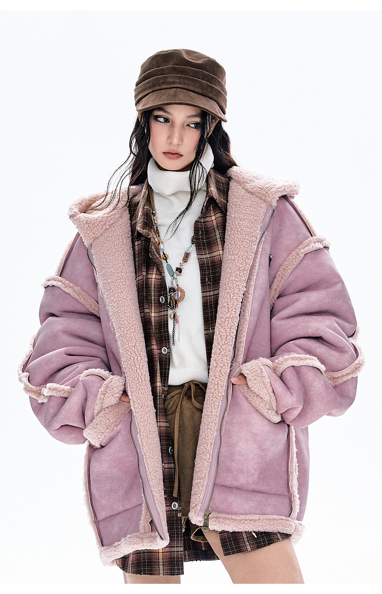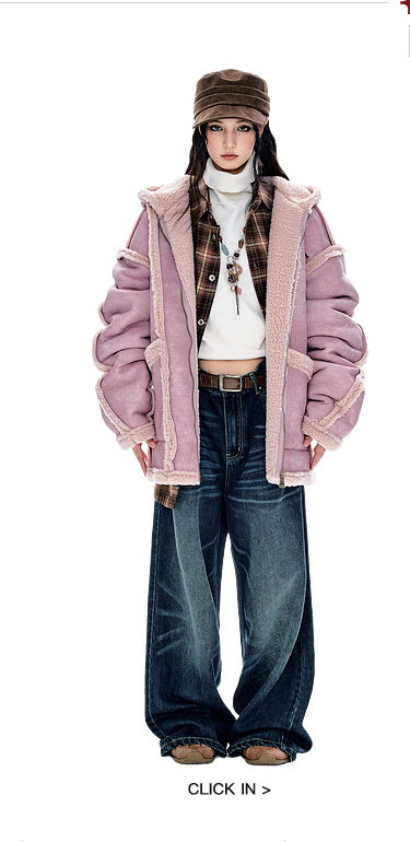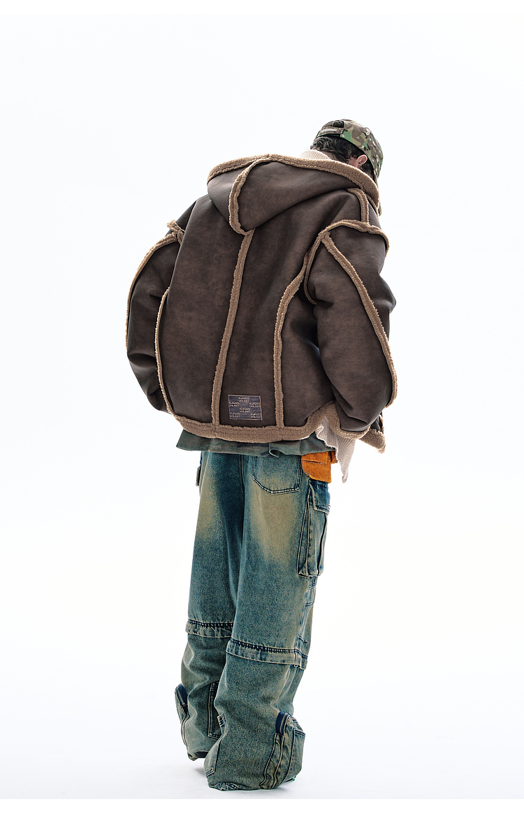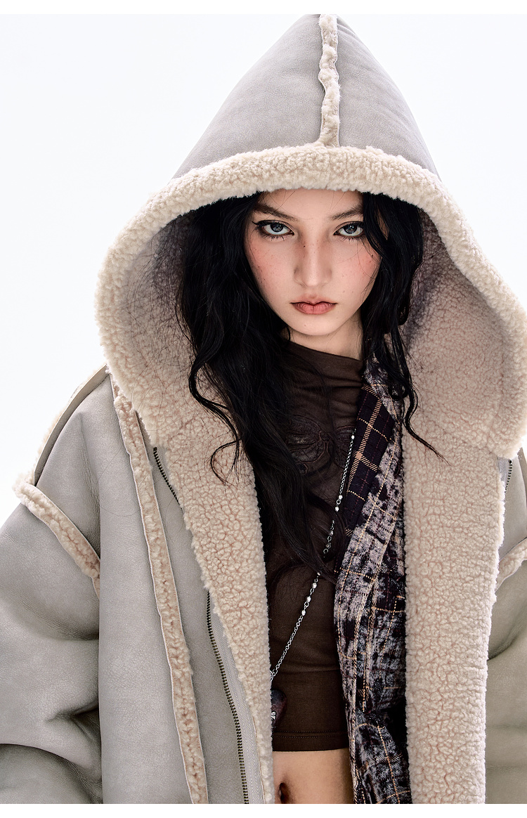 BJHG不计后果美拉德棉服外套男款冬季皮毛一体加厚保暖连帽棉衣女