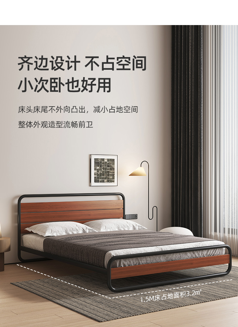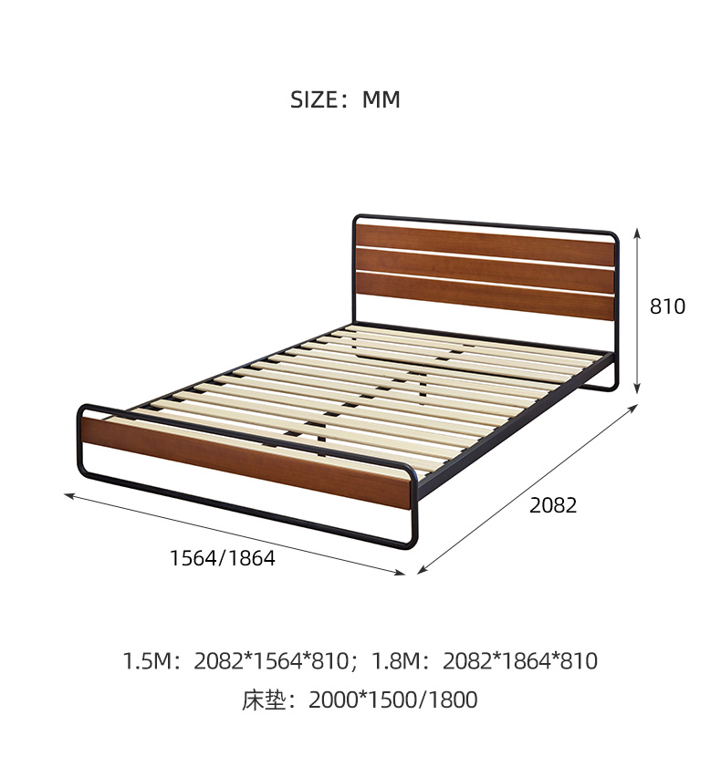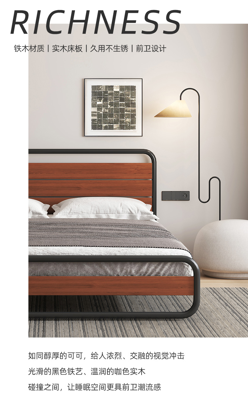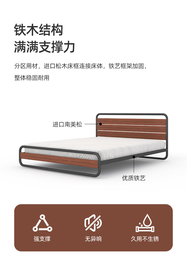 喜梦宝双人床铁艺复古实木铁艺床架双人简约现代时尚可可系列