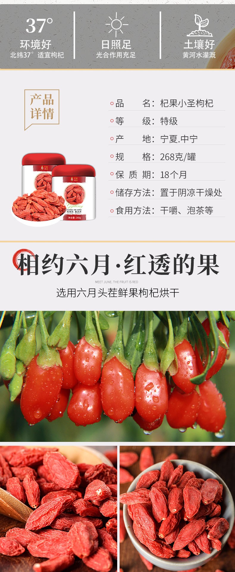 杞果小圣宁夏中宁特级红枸杞268g/罐--YGF