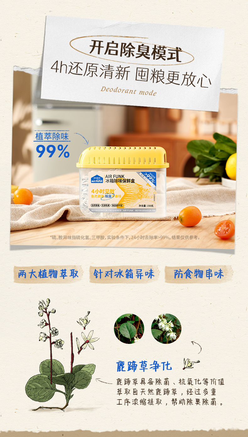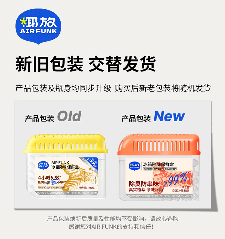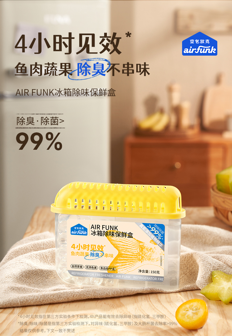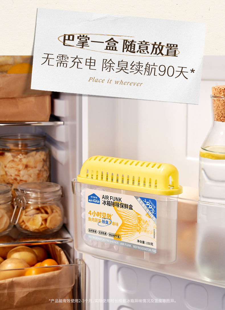Air Funk冰箱除味保鲜盒150g,巴掌一盒随意放置, 无需充电, 除臭续航90天
