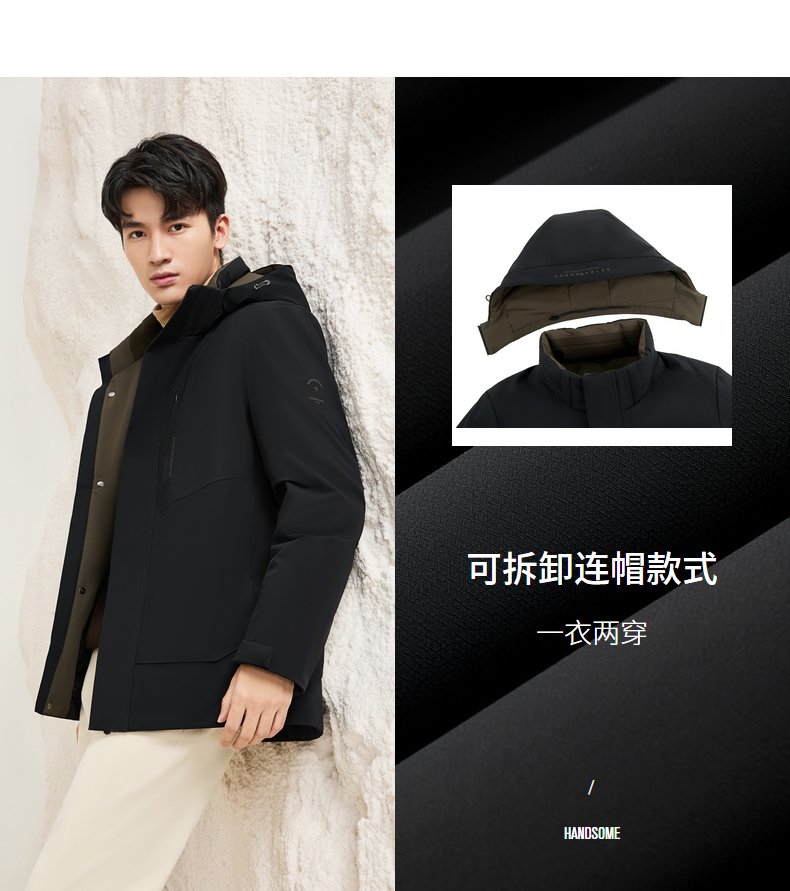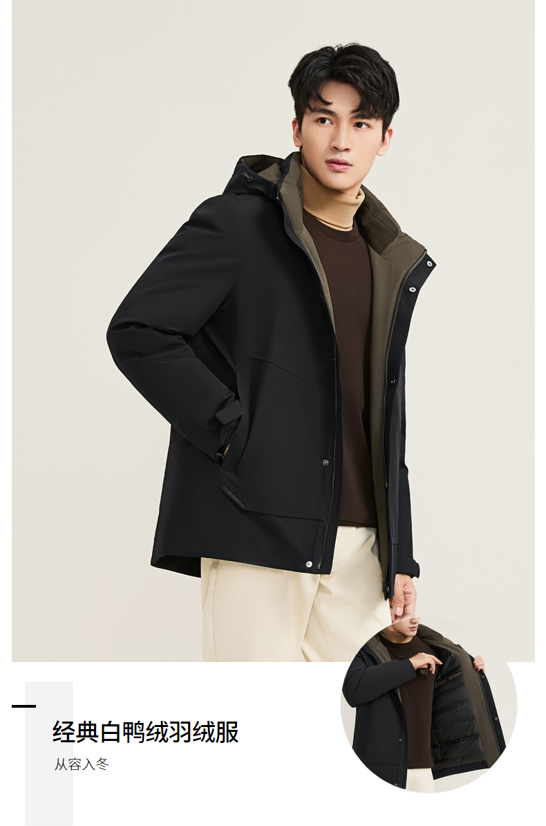 【黄金鲜羽绒】柒牌男士可拆卸连帽羽绒服保暖舒适羽绒外套129E70830