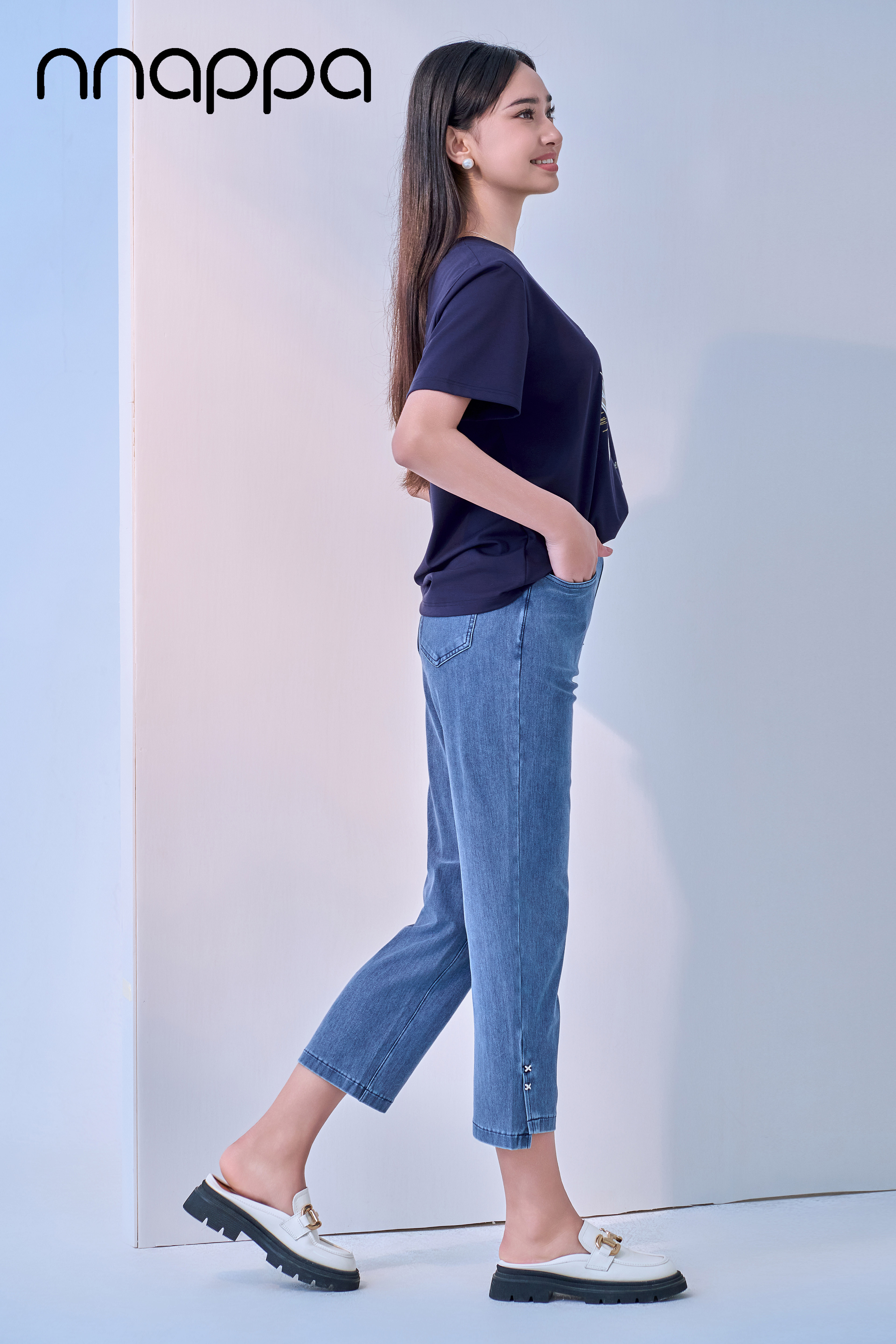 超细滑开叉瘦腿牛仔小直筒裤PA29367