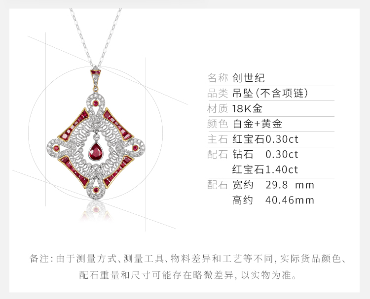 【创世纪】JULEE JULEE茱俪珠宝 18K白金+黄金红宝石钻石吊坠