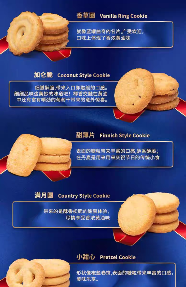 丹麦蓝罐曲奇礼盒装908g/053178 经典口味各有滋味合家欢享