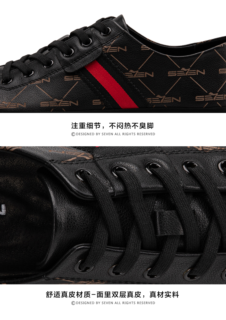 【特价】柒牌男士板鞋年春夏新款时尚青年休闲潮鞋真皮透气百搭男鞋子 122X70130