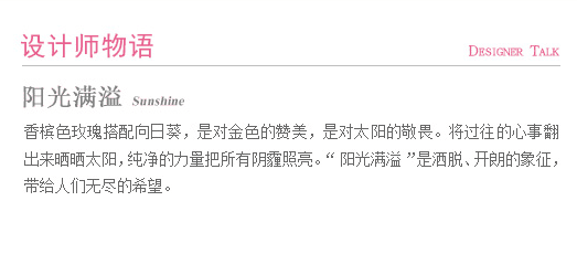阳光满溢----香槟玫瑰15枝,向日葵3枝,搭配适量绿叶、鼠尾草 深蓝色条纹纸 米白色平面纸, 深蓝色缎带花结(1218)
