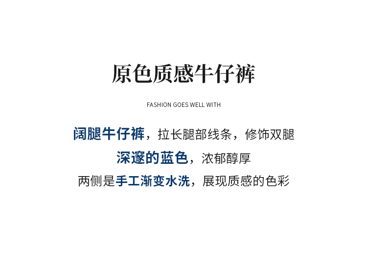 【商场同款】CNT5910 “ 深海蓝牛仔裤 ” 阔腿牛仔裤,拉长腿部线条,修饰双腿 深邃的原色加水洗渐变色 显瘦立体