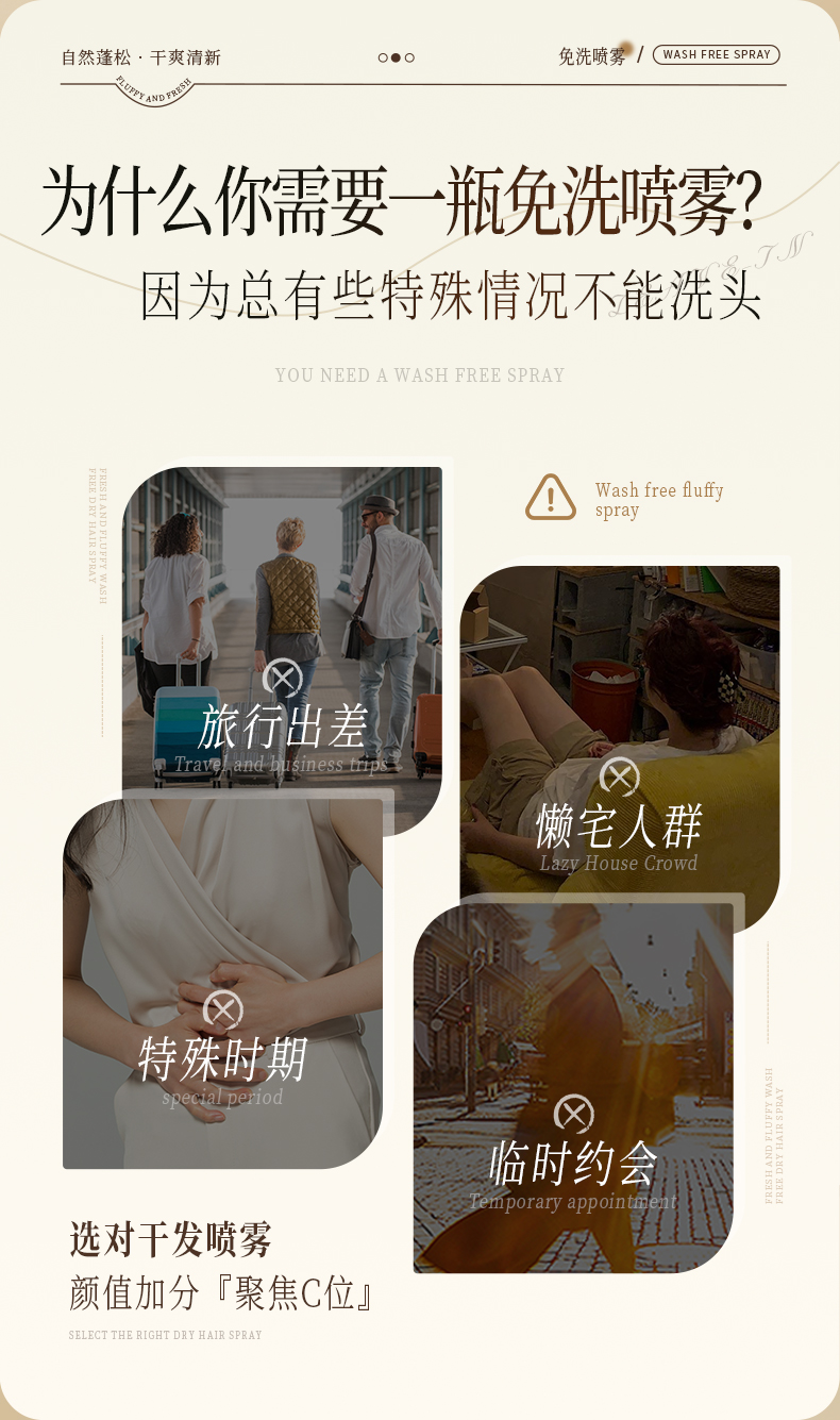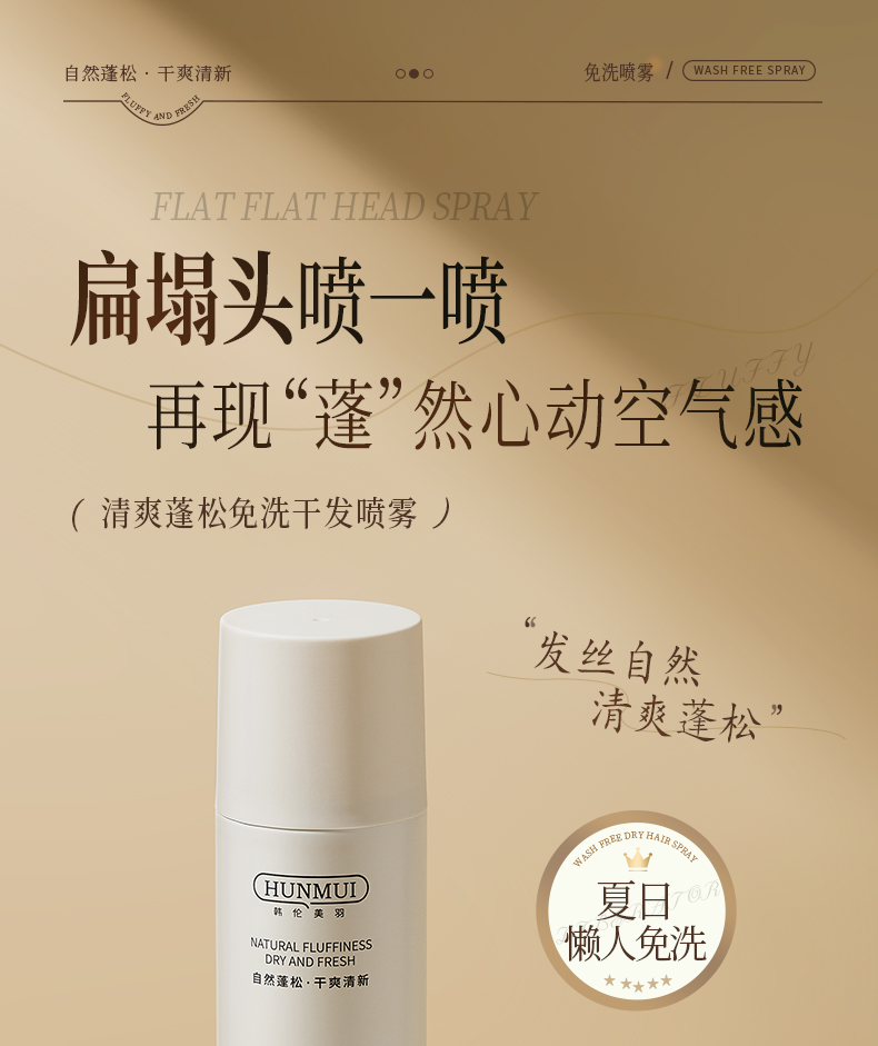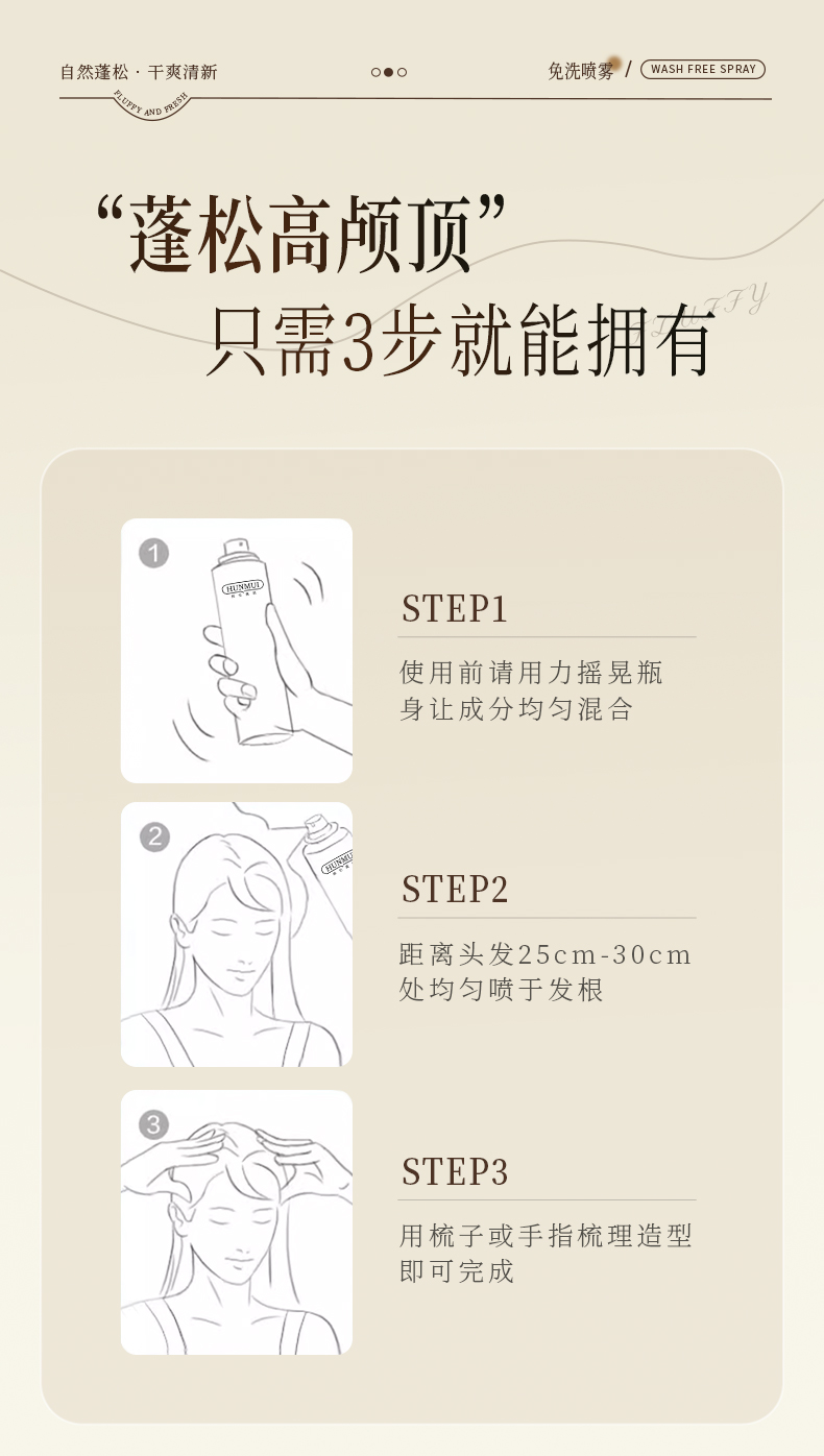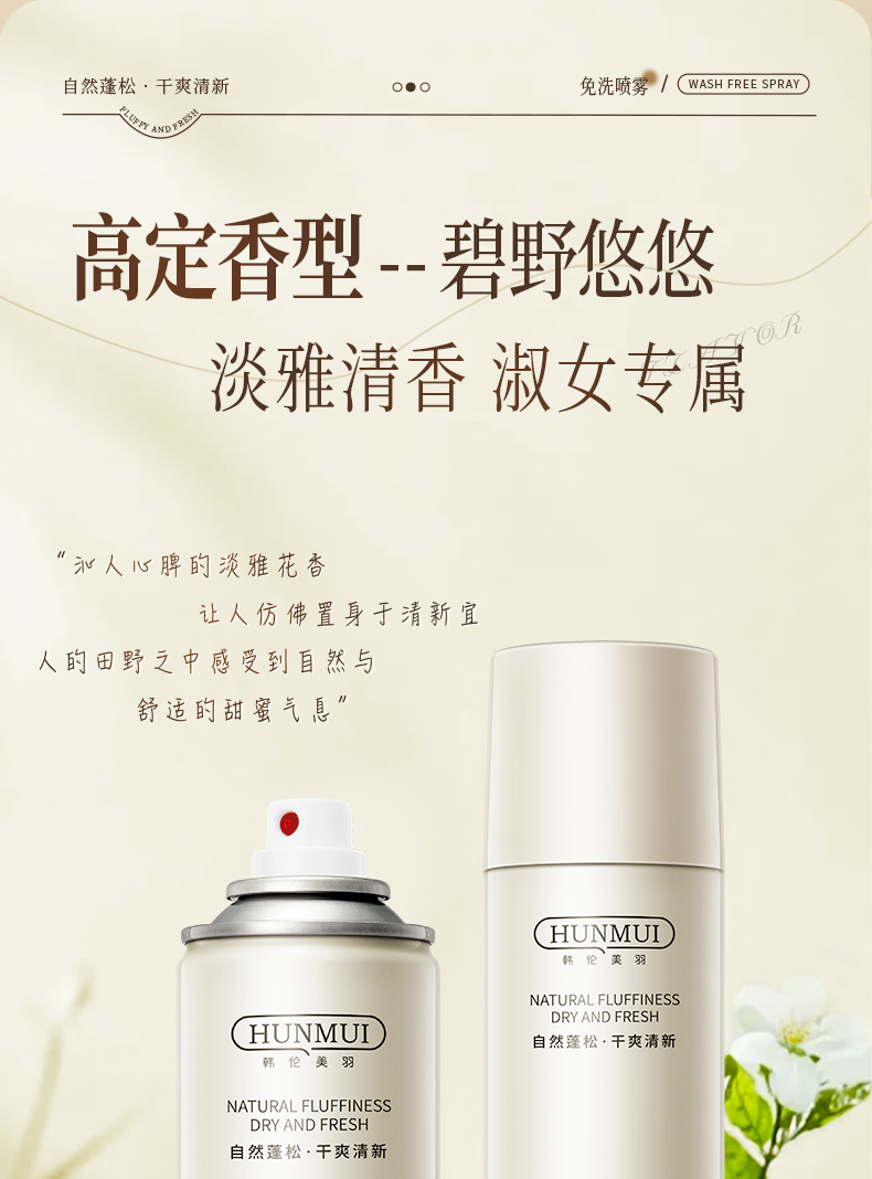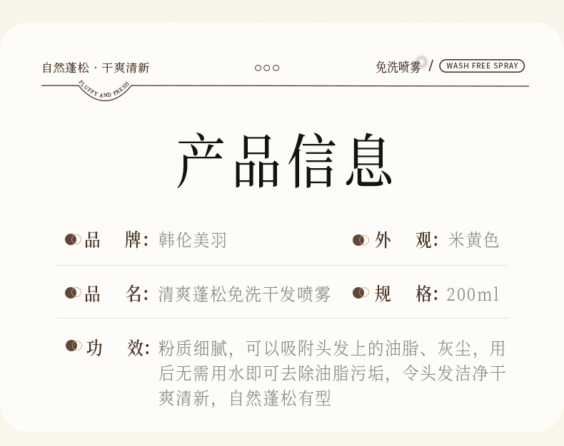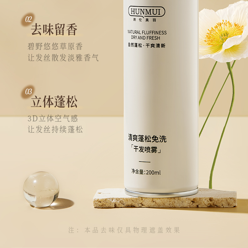 【一喷蓬松 懒人专用】韩伦美羽免洗干发喷雾 一喷去油 秒蓬松 干爽一整天 去味留香 200ml大容量