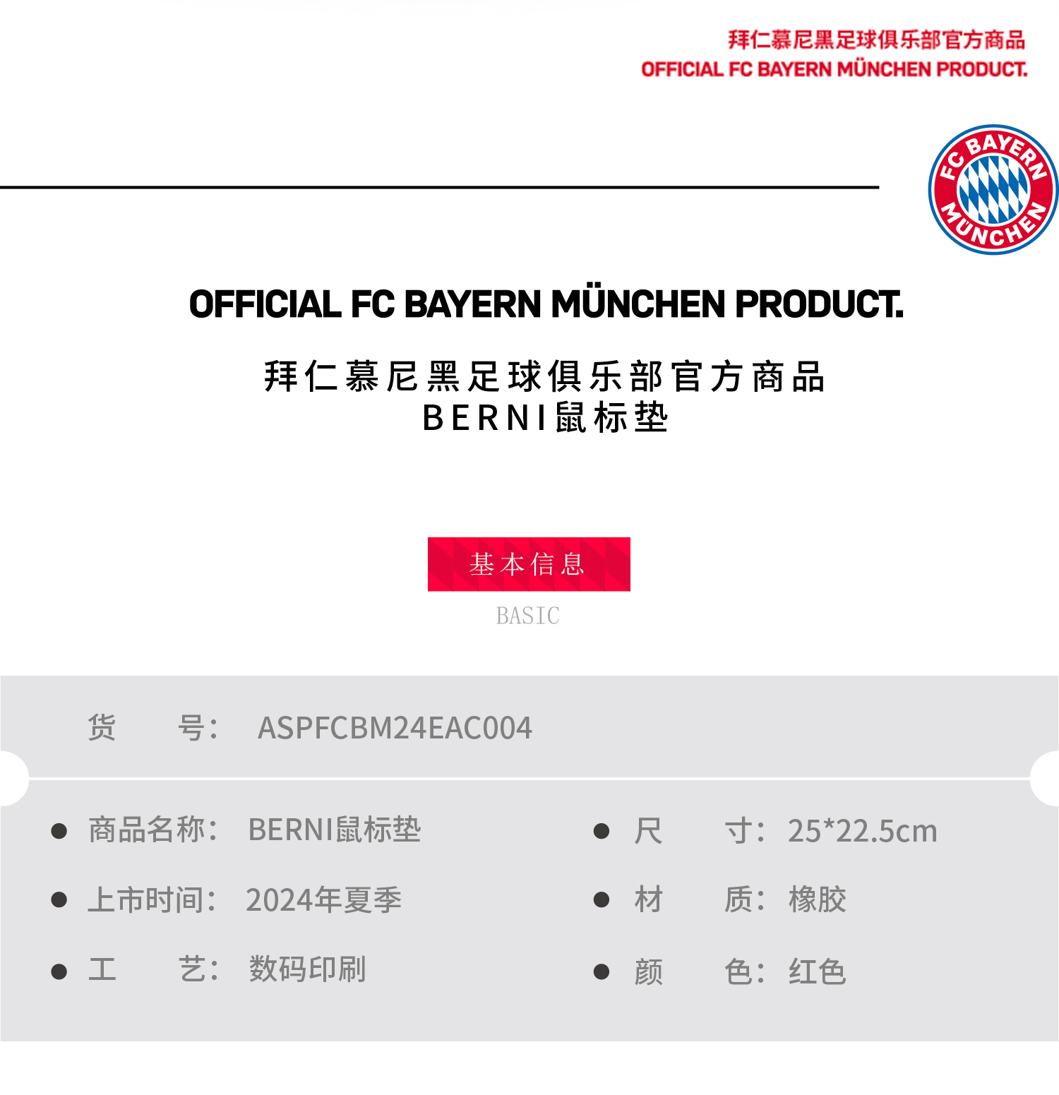 【官方正版】拜仁慕尼黑足球俱乐部|BERNI卡通鼠标垫可爱办公护腕垫