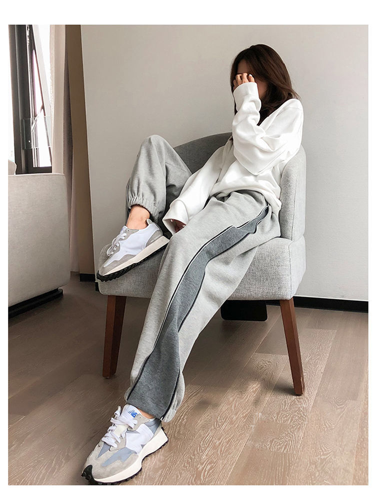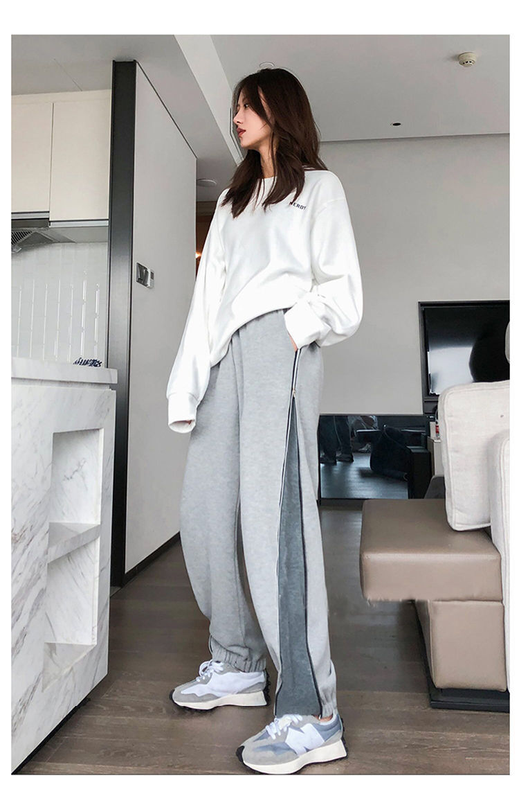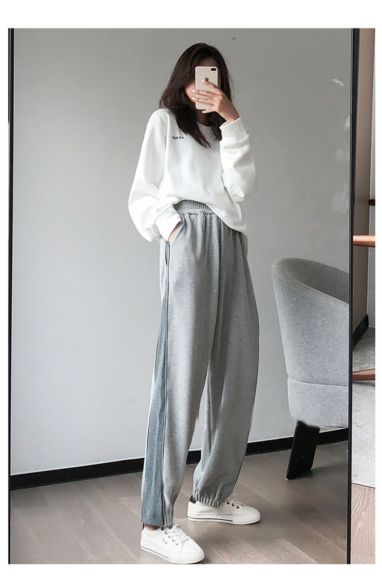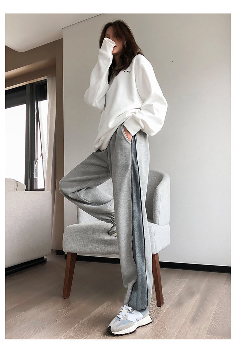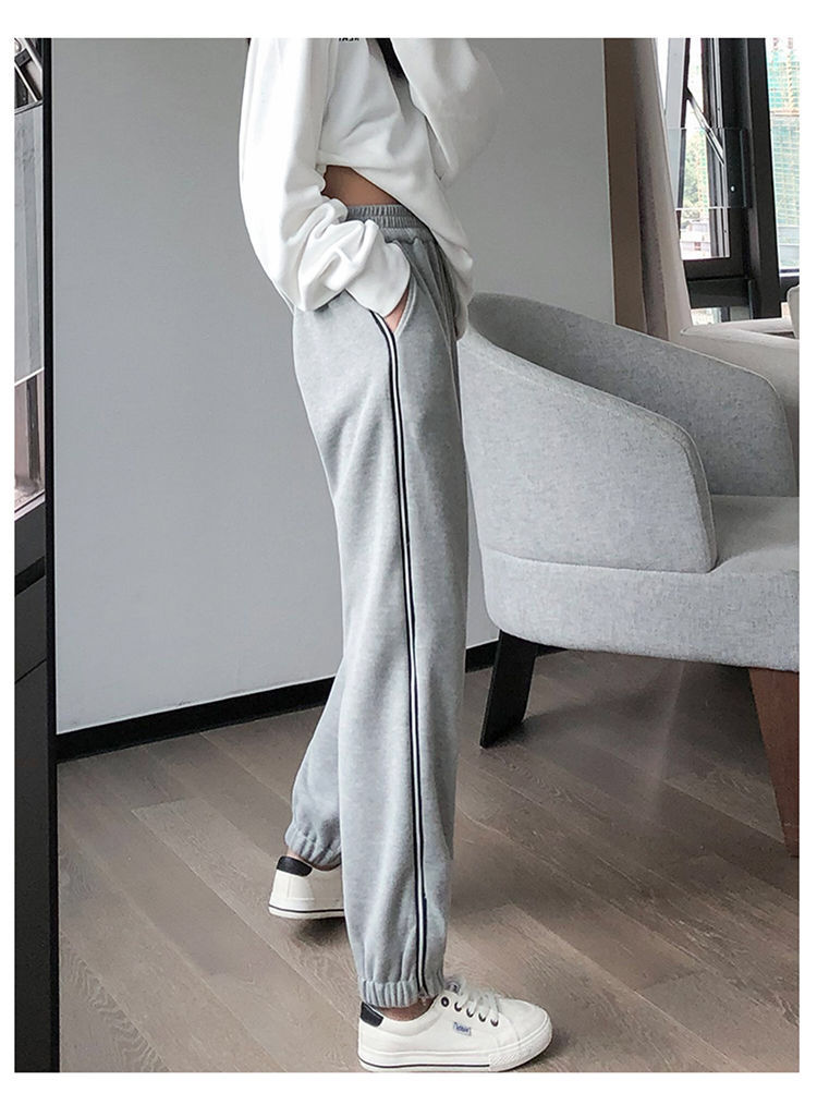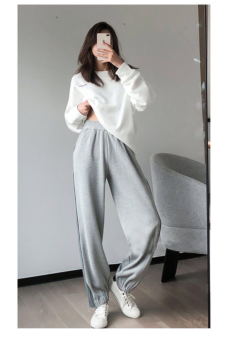 加绒加厚灰色运动裤宽松束脚秋冬高腰直筒阔腿休闲卫裤子显瘦ins