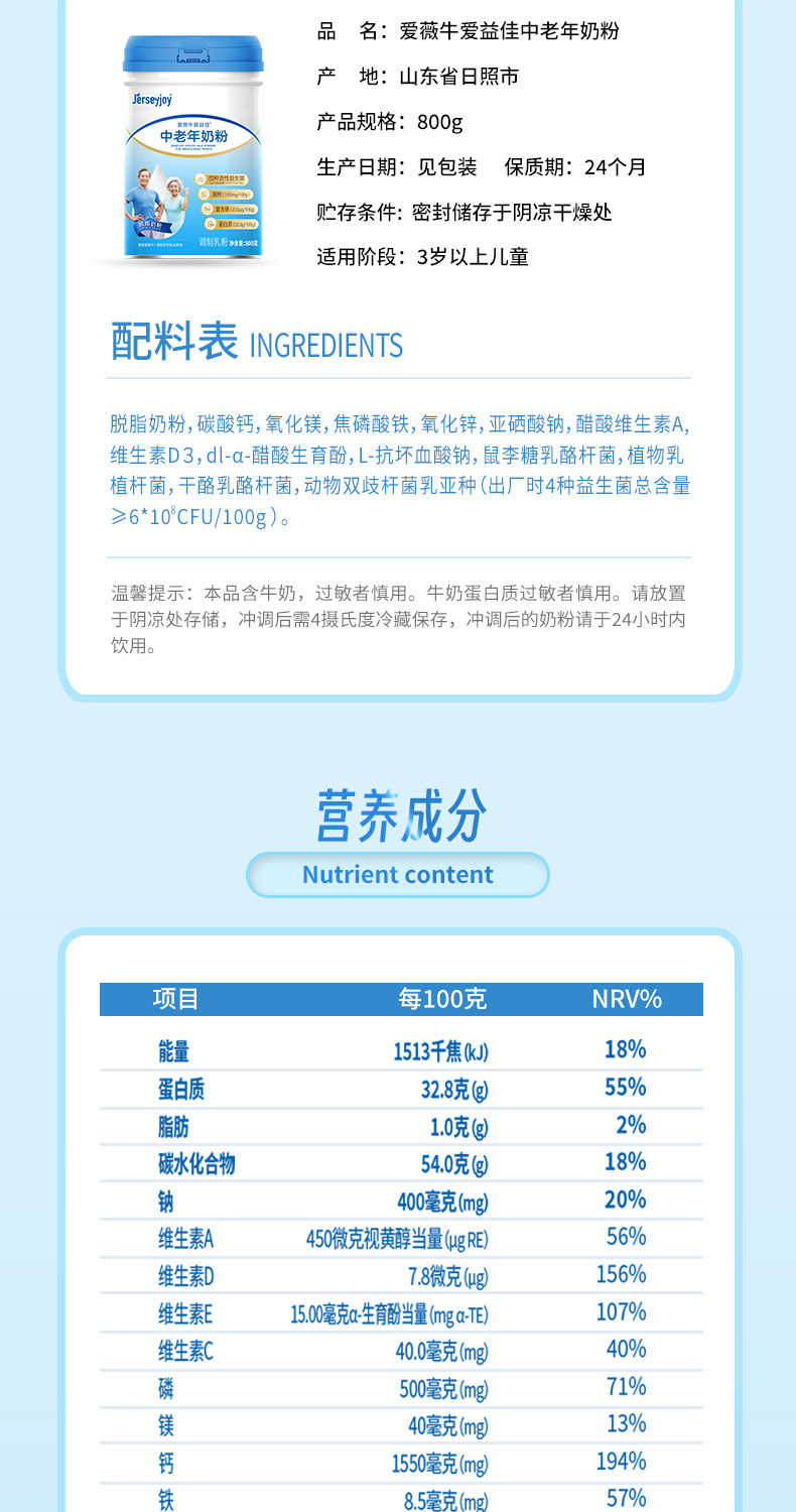 澳洲爱薇牛爱益佳 中老年奶粉 800g