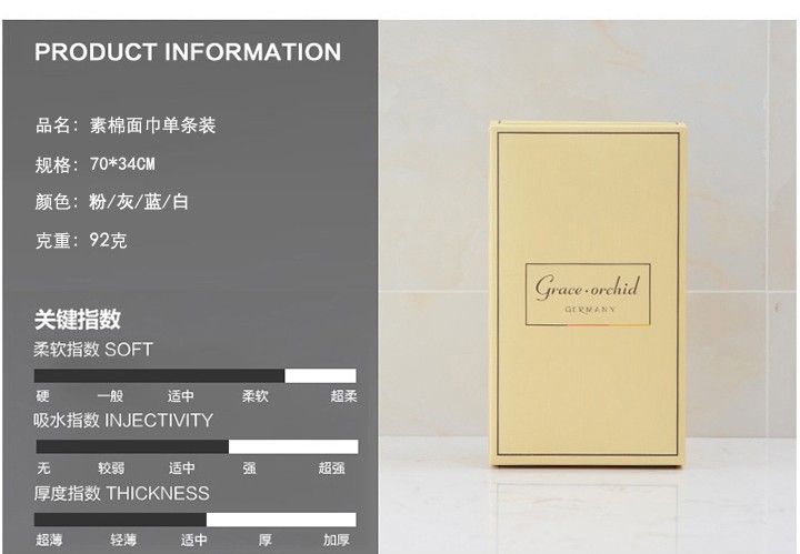 洁丽雅Grace素棉毛巾34*70cm 92g 颜色随机
