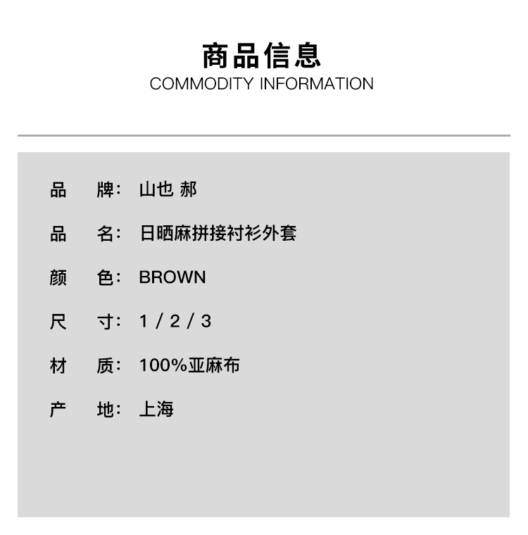 山也 郝 日晒麻拼接衬衫外套