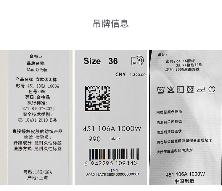 Marc O'Polo/MOP 秋季新款黑色醋酸纤维阔腿休闲裤西装套装女