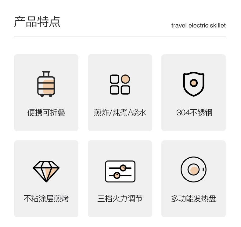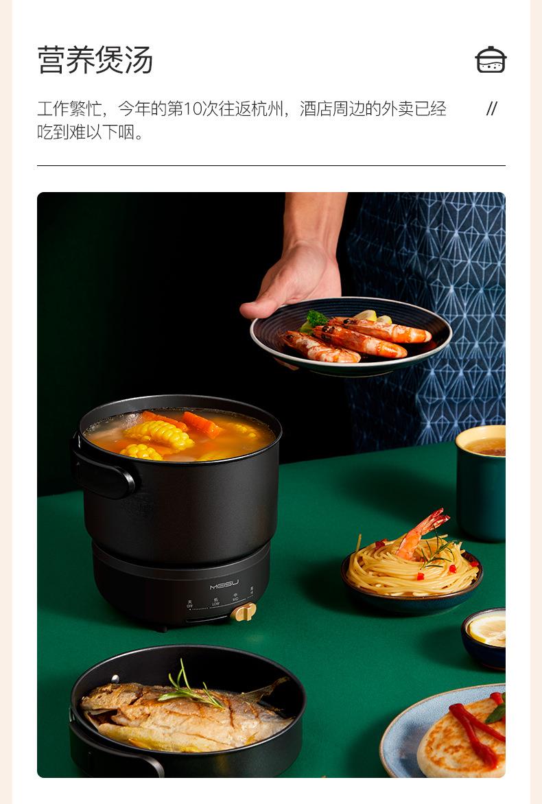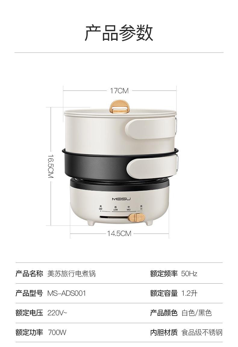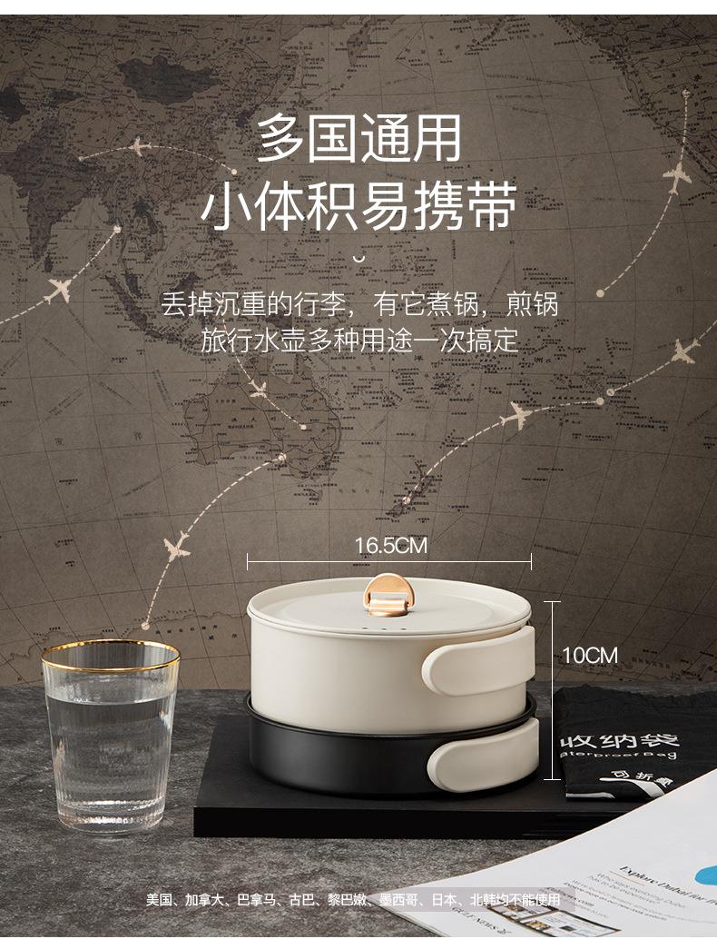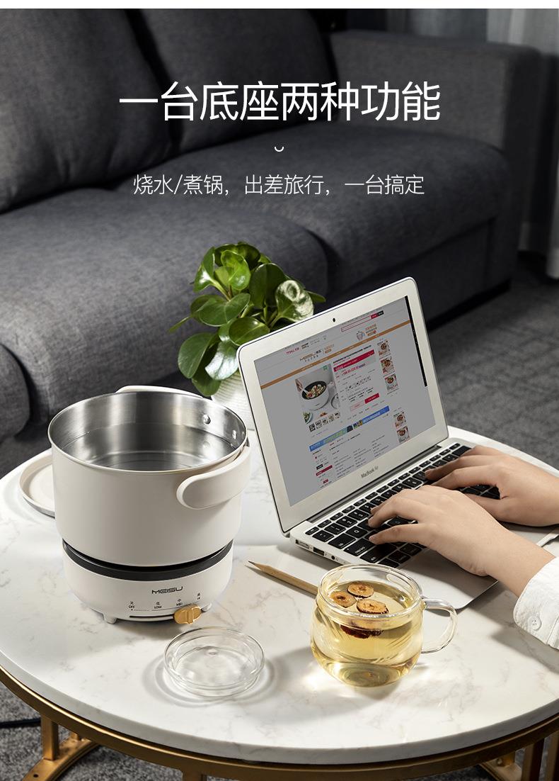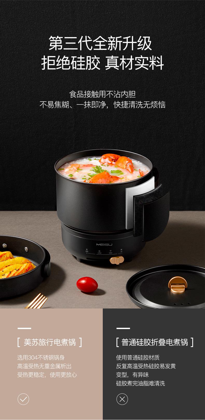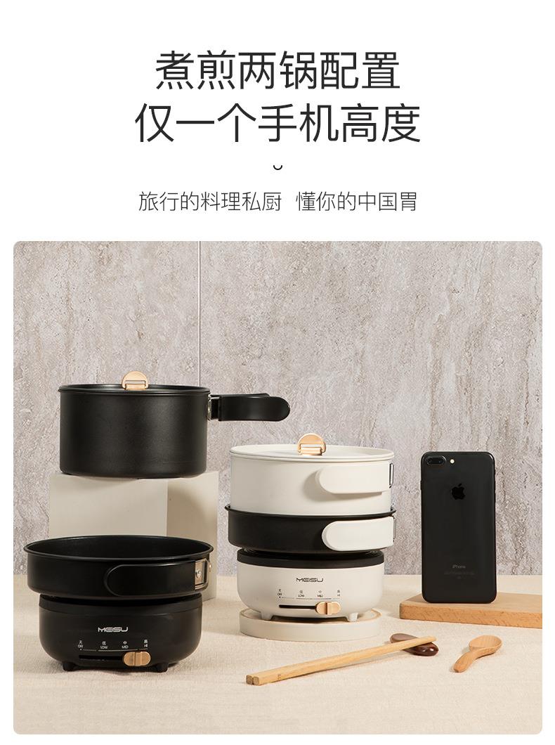 美苏折叠锅便携出差用小型多功能蒸煮煎炒分体式电火锅旅行电煮锅