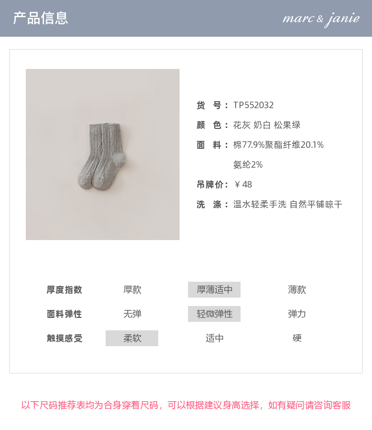马克珍妮男童柔软弹力透气纯色长袜2025年秋冬新款552032