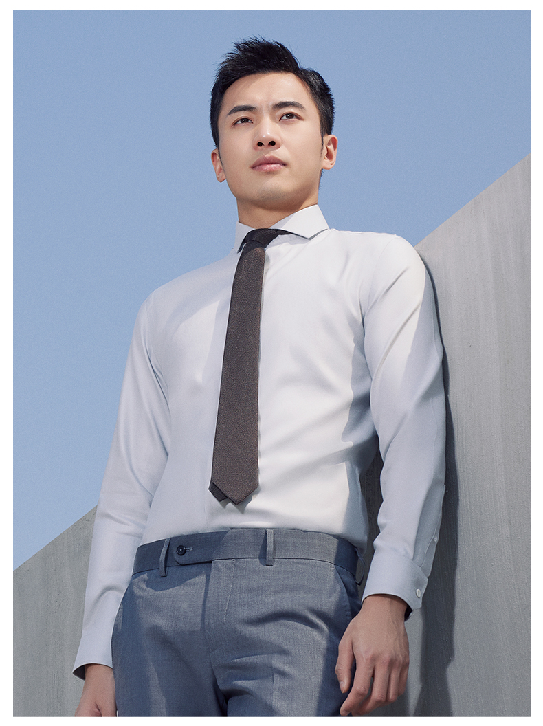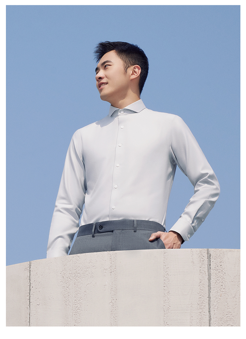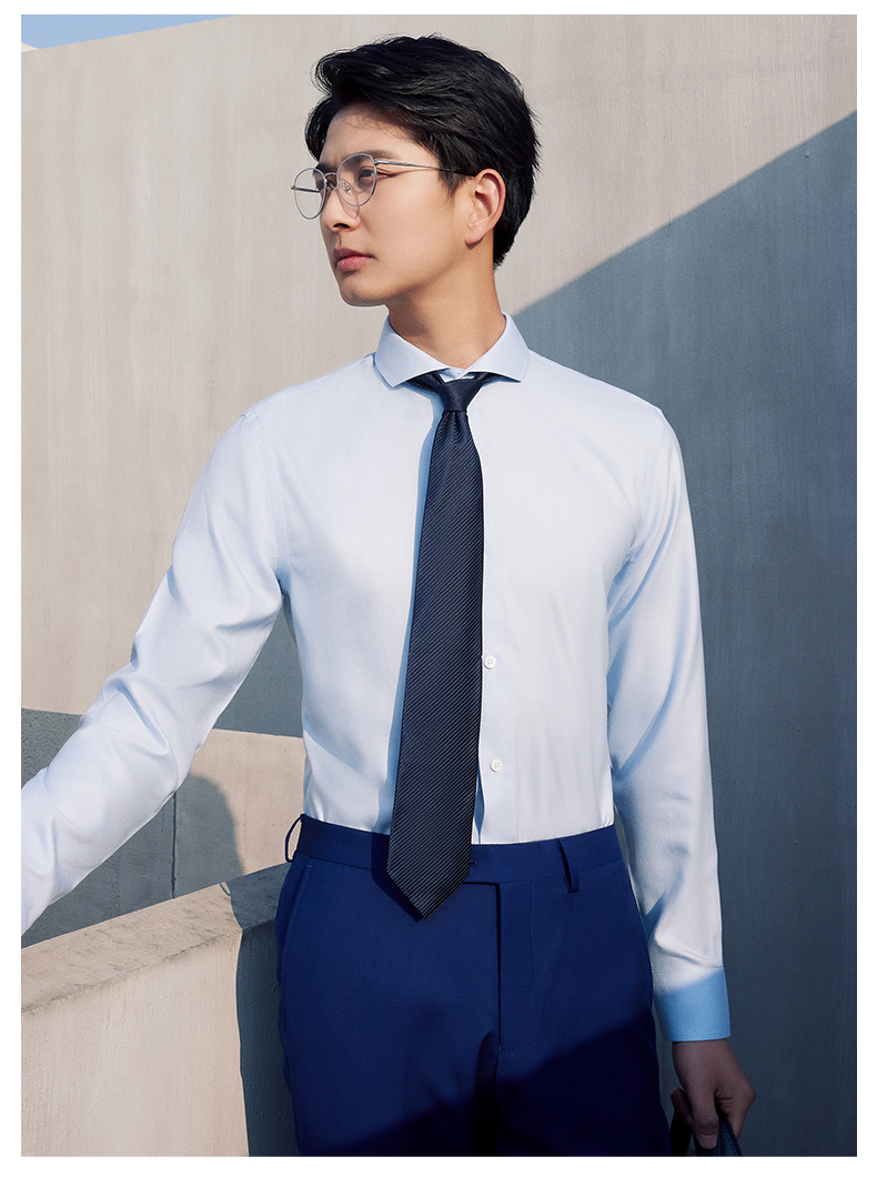 十如仕100支纱温莎领提花凉感长袖衬衫-401-01