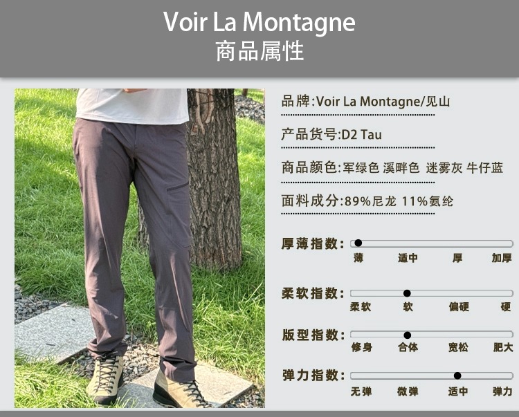 Voir La Montagne/见山 D2 Tau 薄款软壳速干裤长裤防泼水配腰带