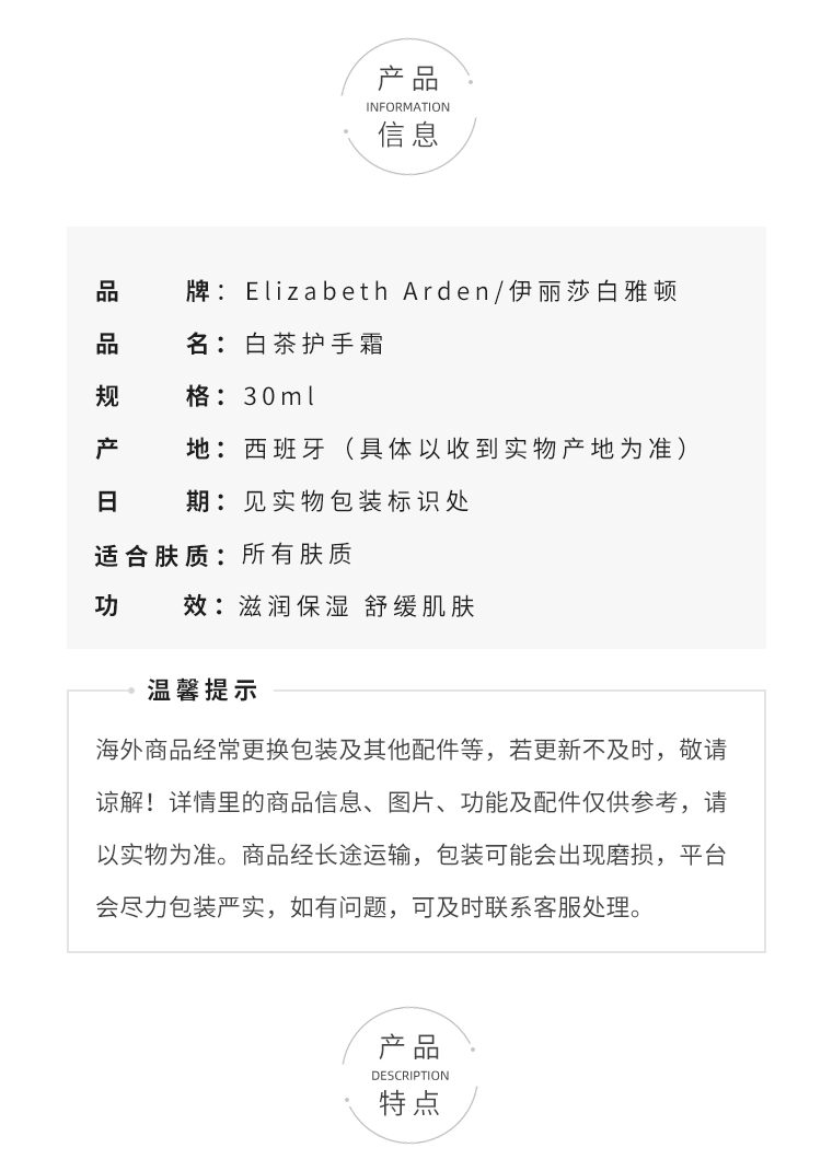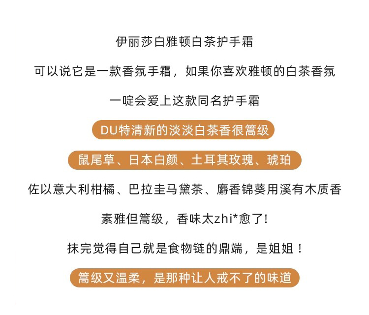 伊丽莎白雅顿白茶护手霜补水保湿滋润清爽不油腻滋养香氛持久留香30ml