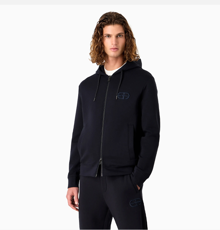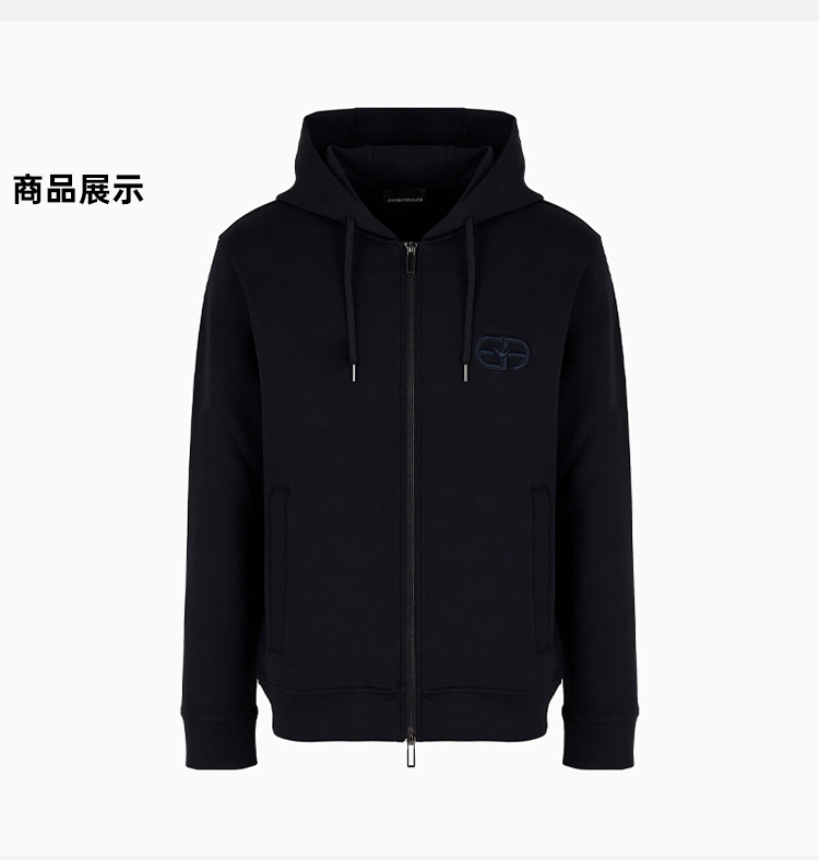 【一】EMPORIO ARMANI 阿玛尼 男士压纹刺绣EA徽标双面平纹针织拉链连帽运动卫衣 深蓝色 8N1ML6 1JHSZ 0920