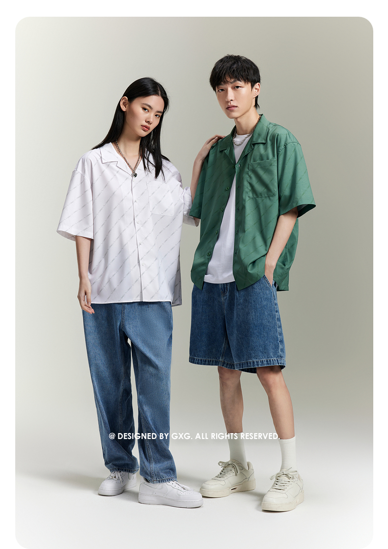 GXG男装 双色满印撞色织唛短袖衬衫 热卖衬衫 GEX12313722