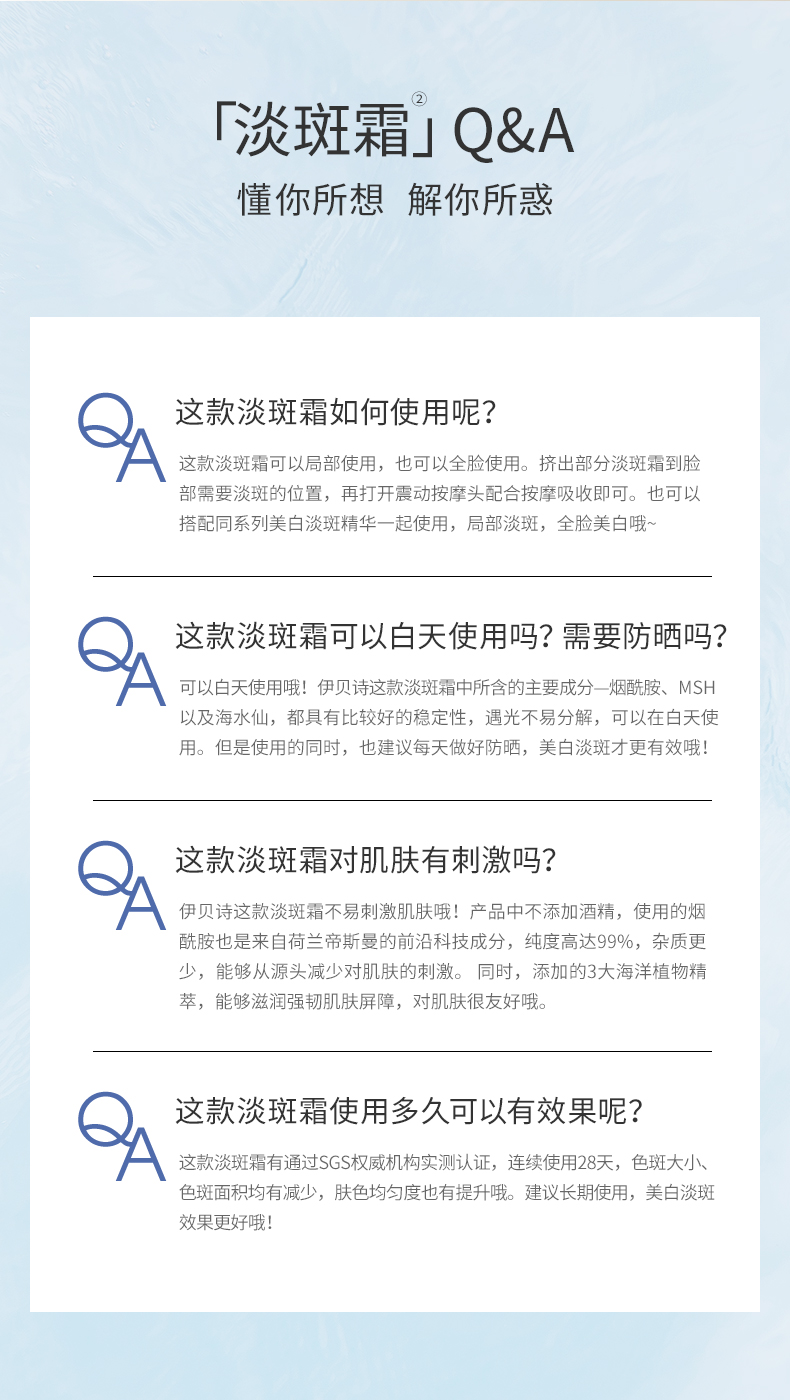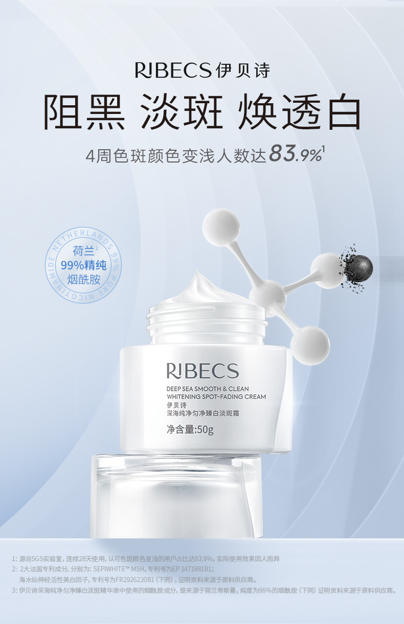 【官方】伊贝诗深海纯净匀净臻白淡斑霜减少暗沉提亮美白改善肤色精华霜官方正品女