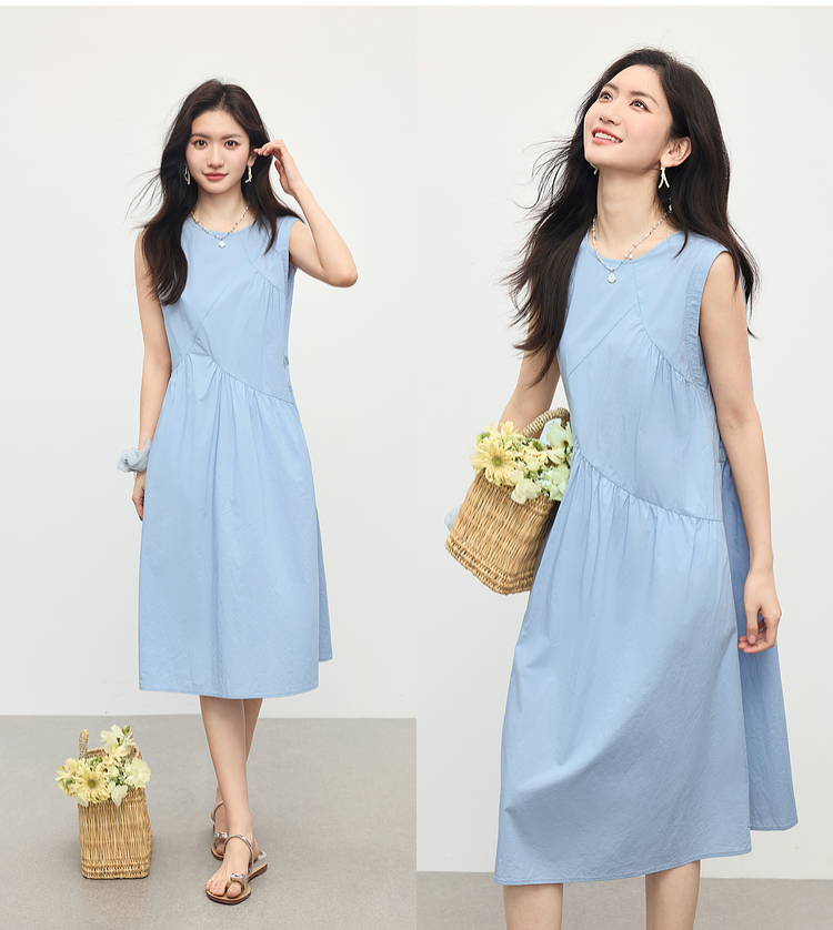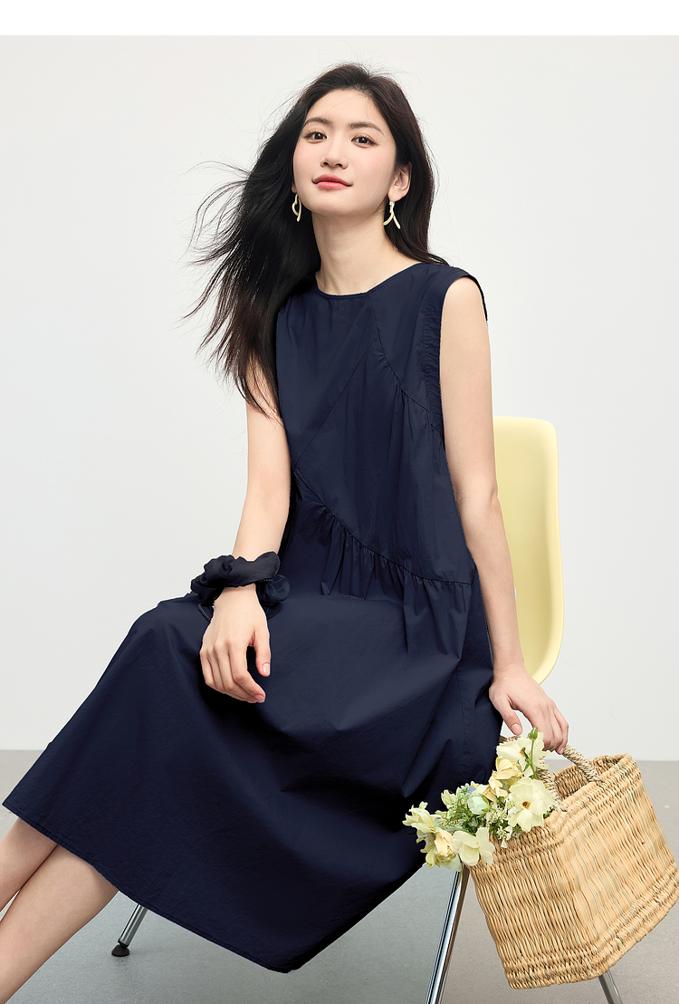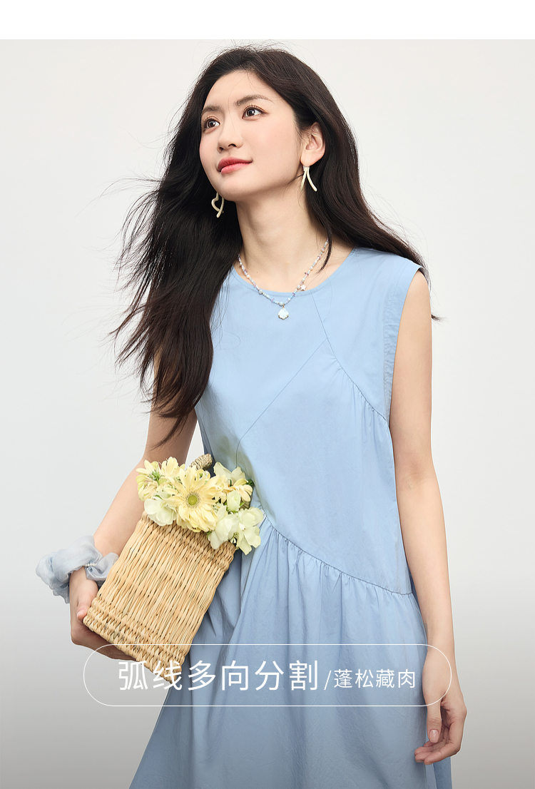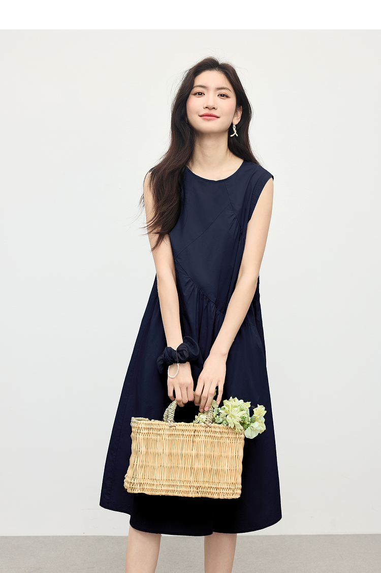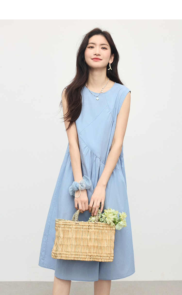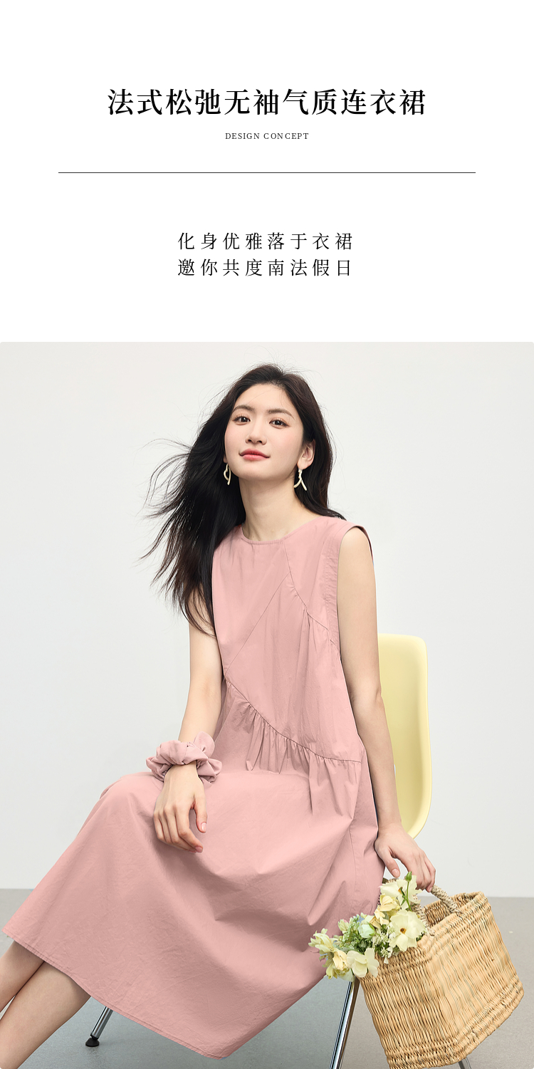 【专属特价】熙世界法式无袖背心连衣裙女夏季休闲度假风圆领宽松长裙