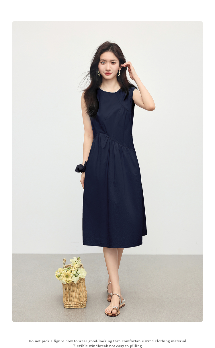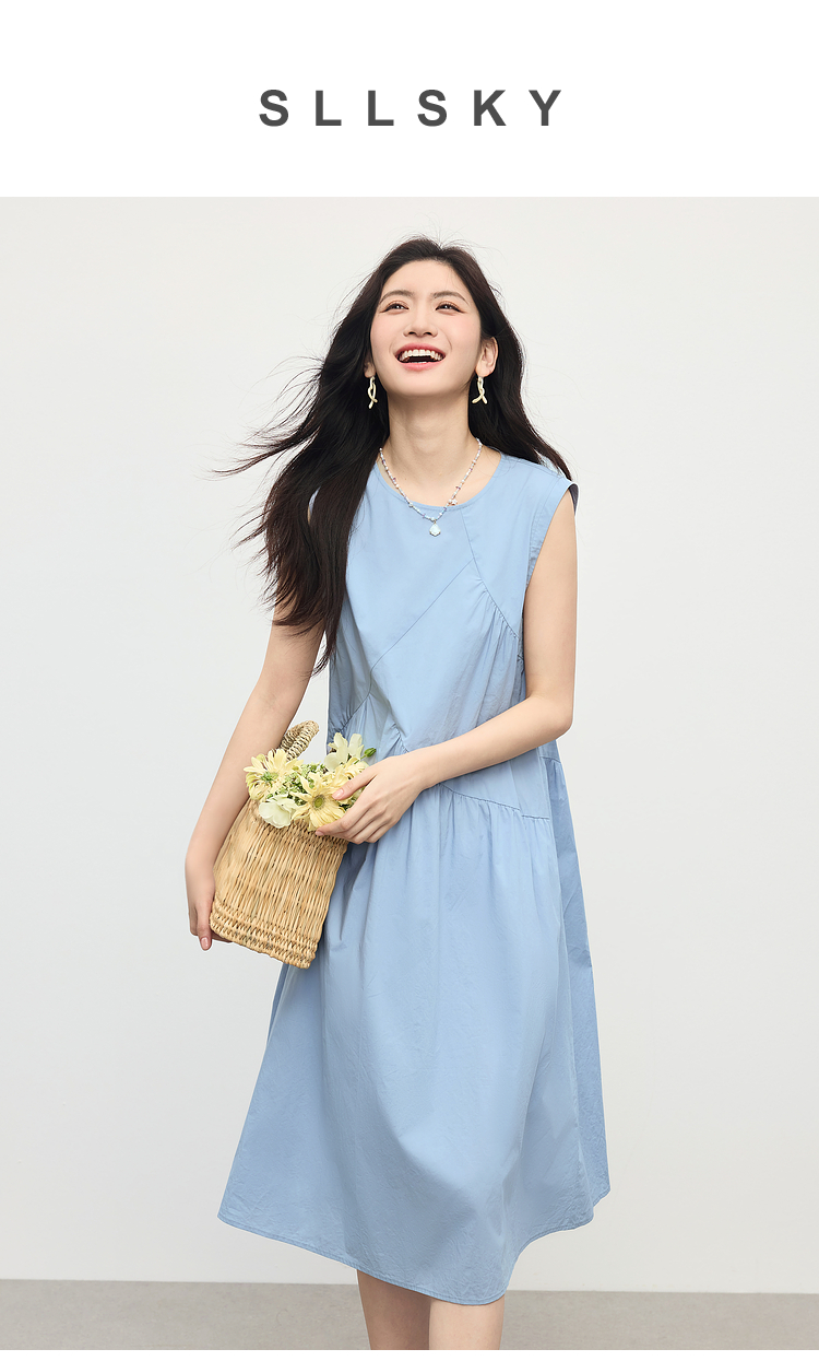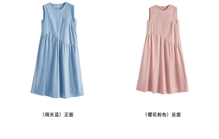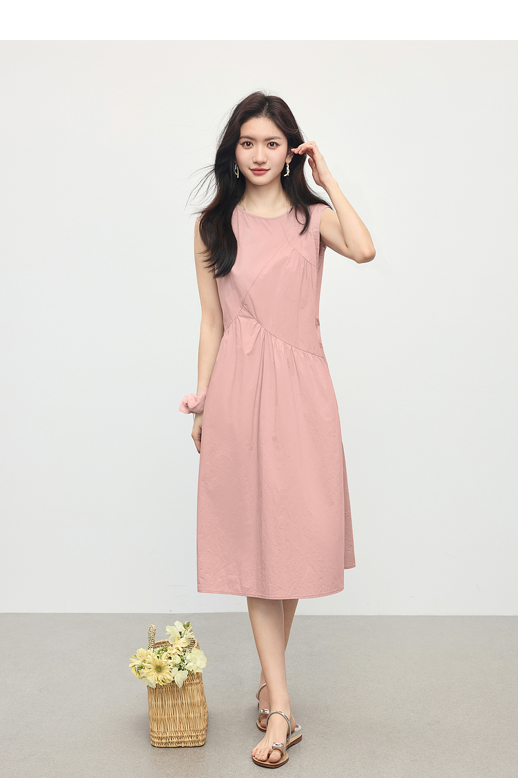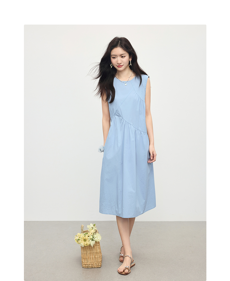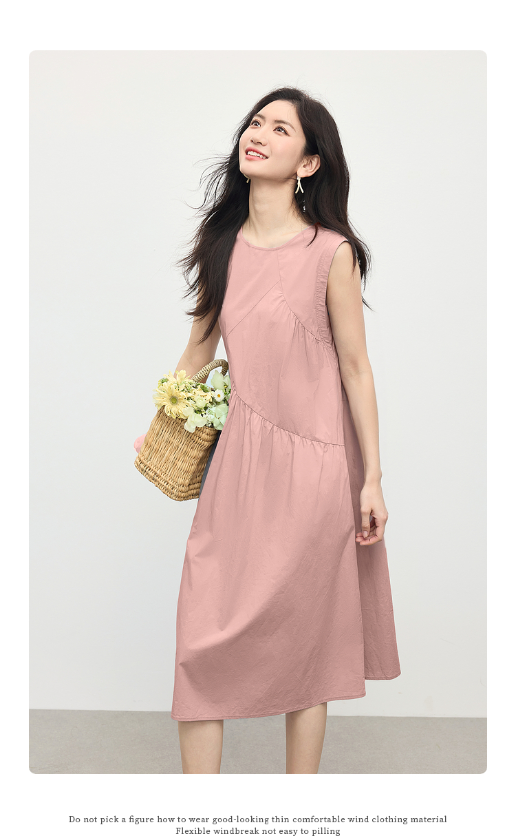 【专属特价】熙世界法式无袖背心连衣裙女夏季休闲度假风圆领宽松长裙