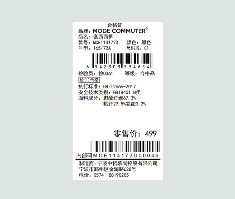 MODE COMMUTER | MC冬季0染色环保简约通勤西裤长裤男MCE114172D