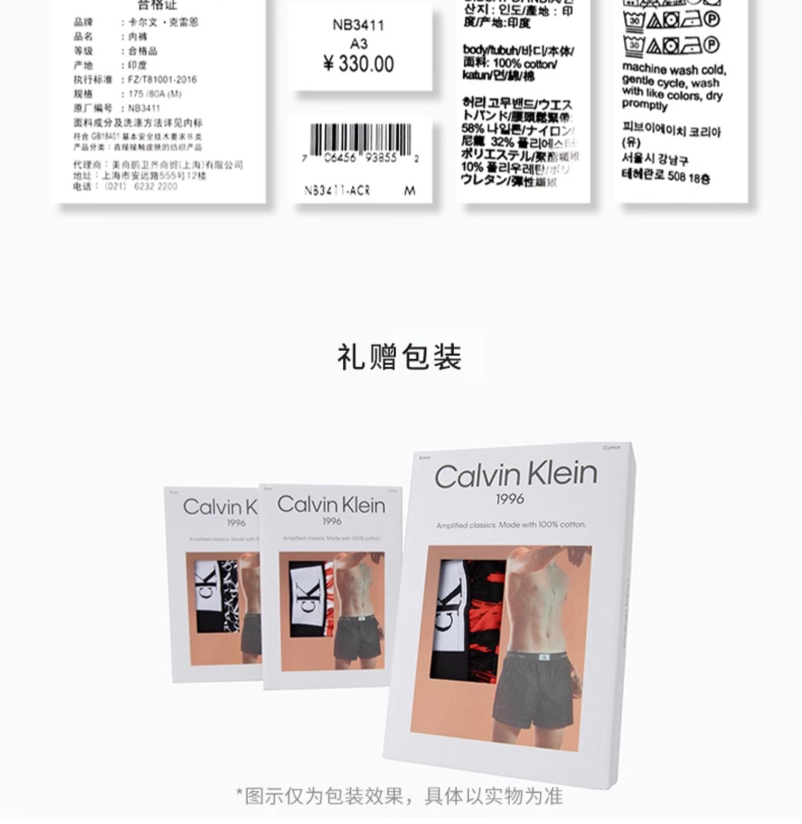 【海南专供价】CKU【CK96系列】男全棉小方块宽松四角裤平角内裤NB3411