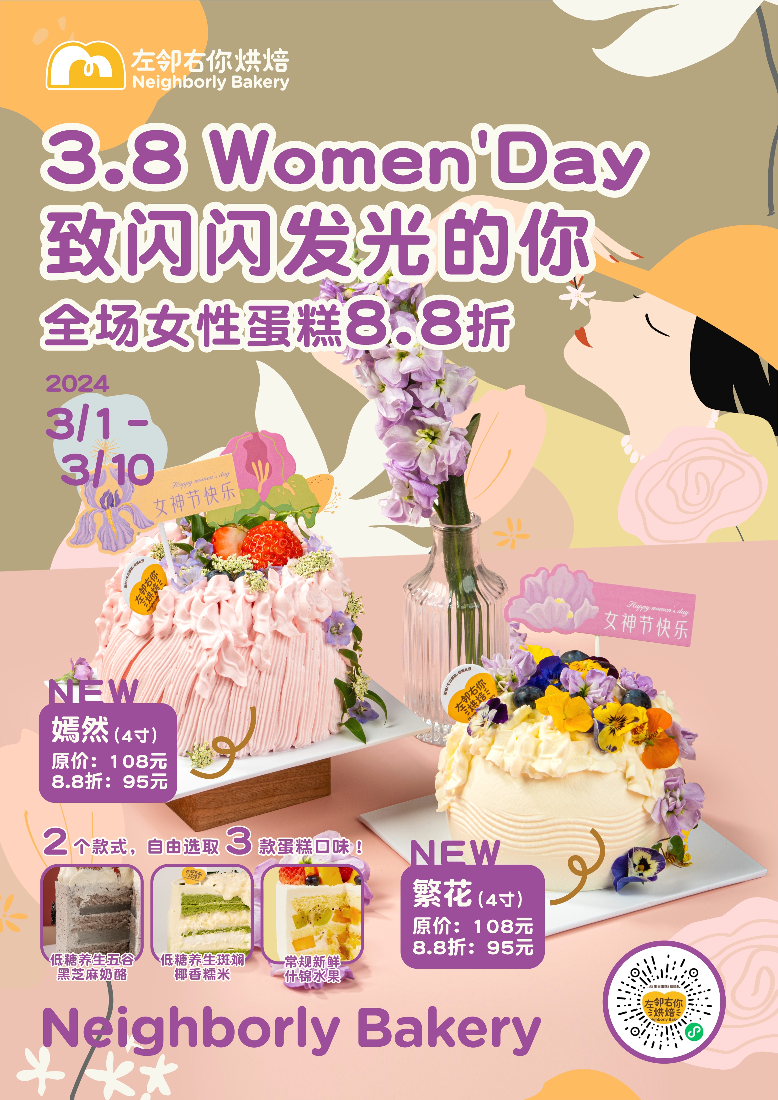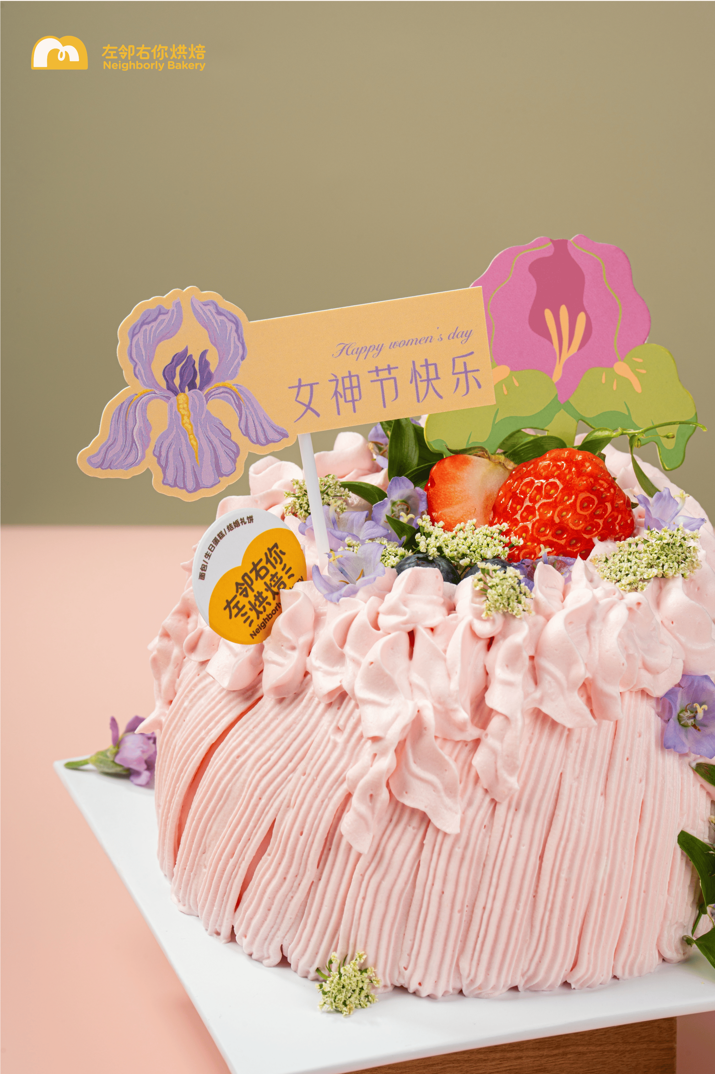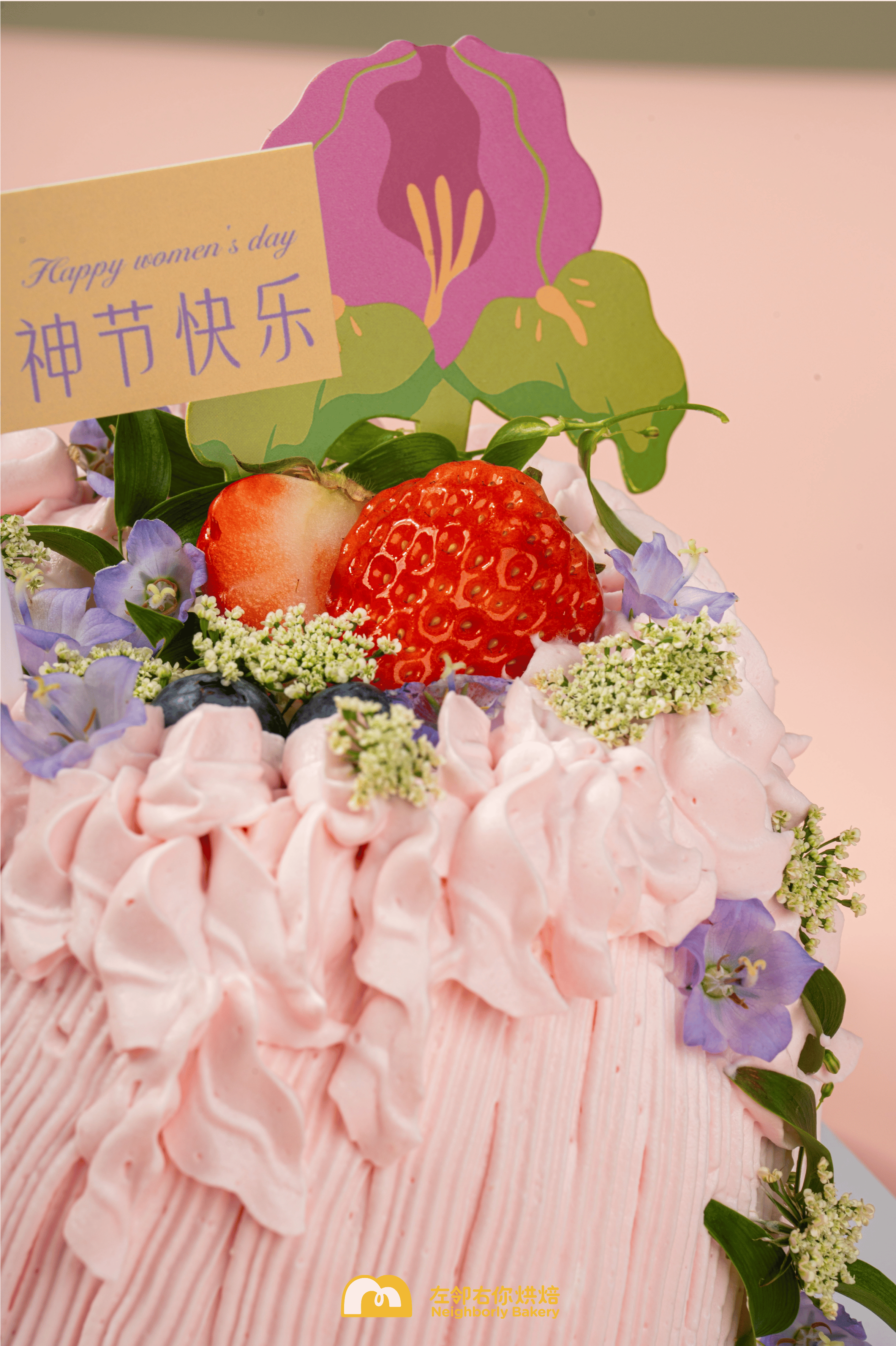 蛋糕外层是淡淡的粉色,上面装饰着可食用性花朵,是春日的明媚,也是女性的赤忱勇敢