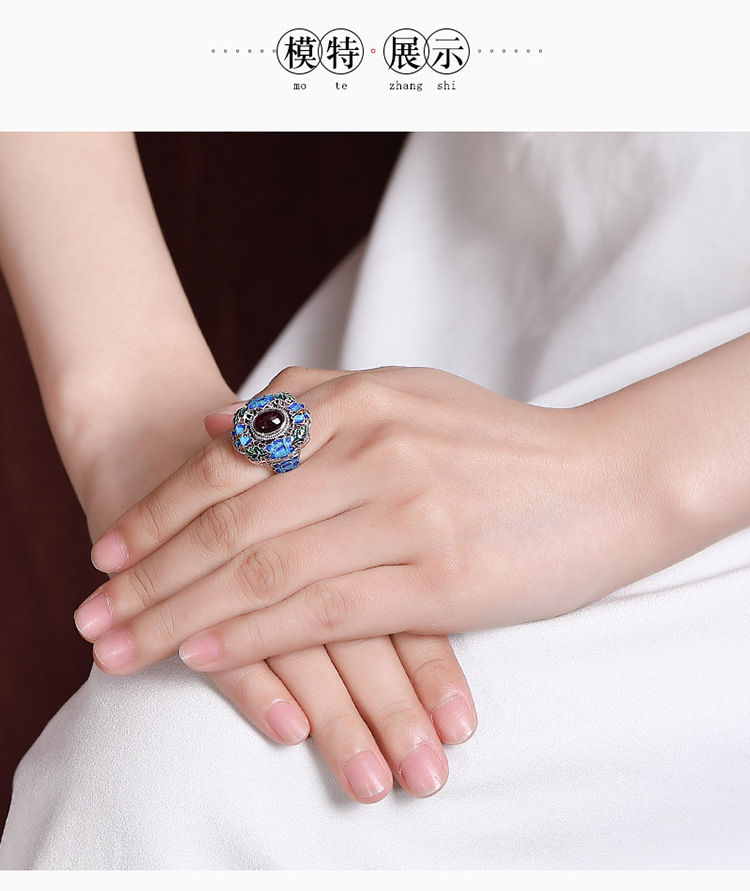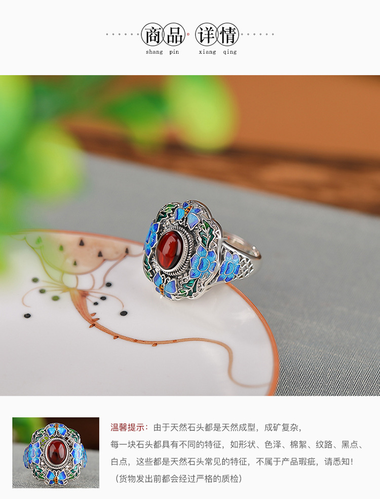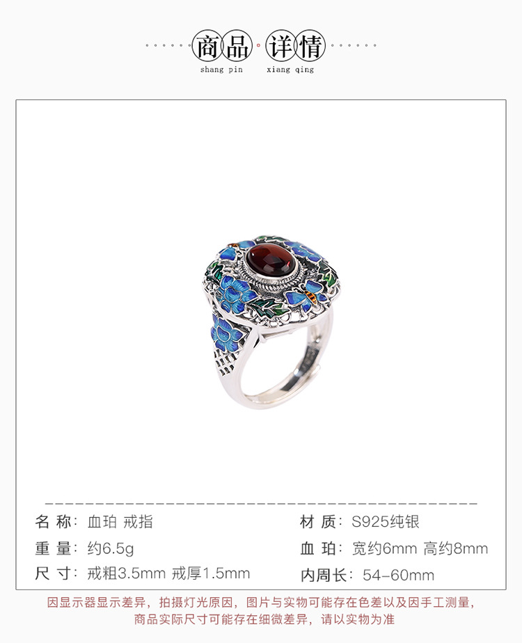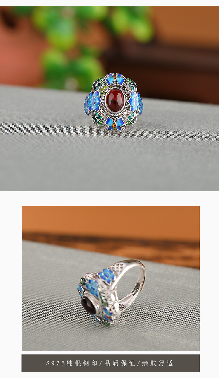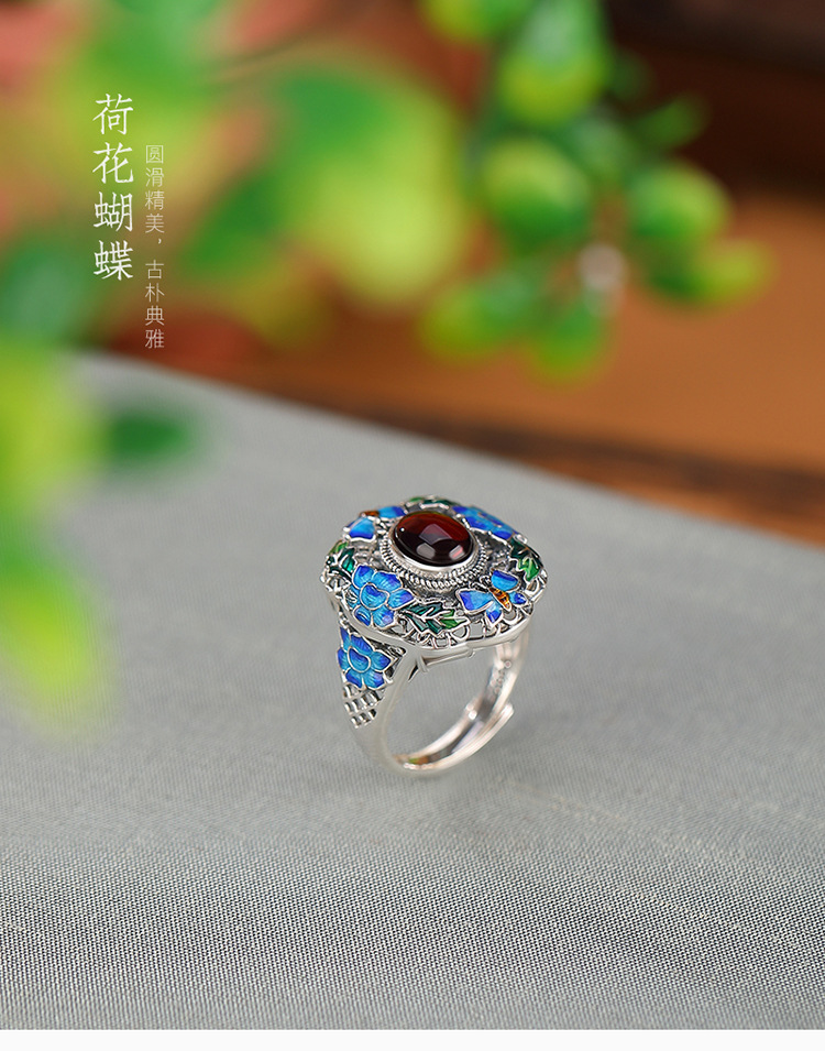 【逸品莲花】S925银血珀国潮景泰蓝莲花蝴蝶镂空戒指【CW-JZ06378】
