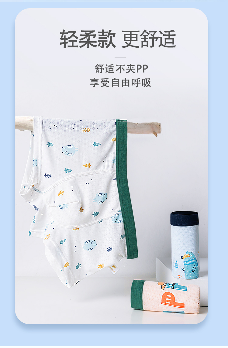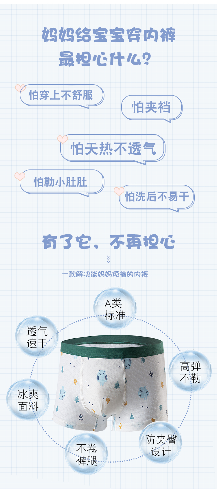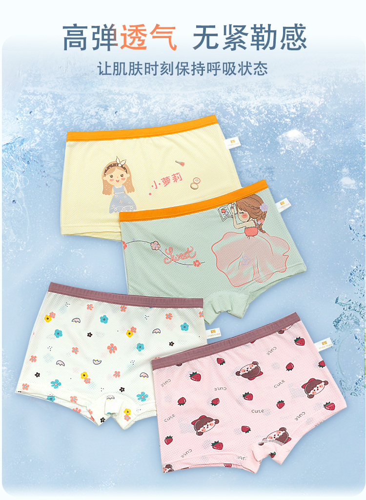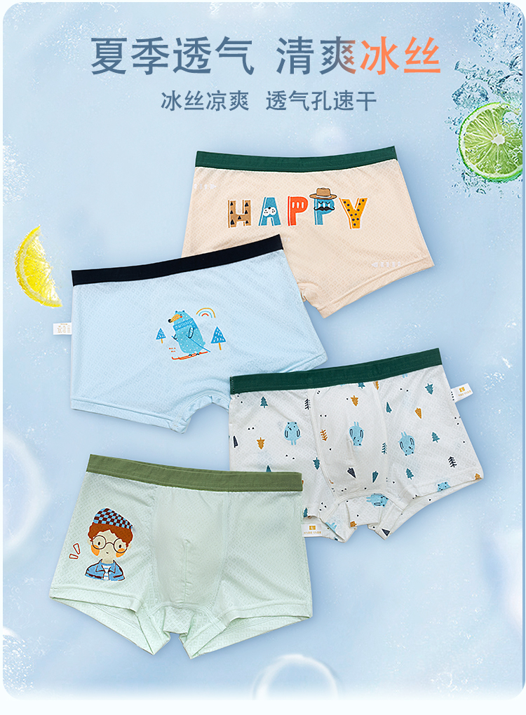 童童树夏季裸感冰丝无痕高弹透气抗菌儿童内裤男女童中大童平角裤