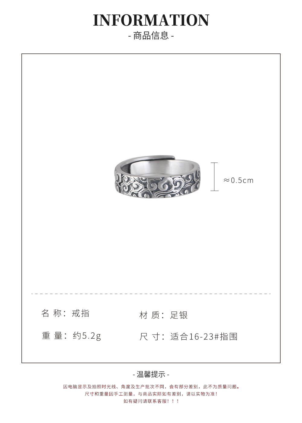 【祥云万里】990银足银复古祥云戒指 【SCH-SY24071】