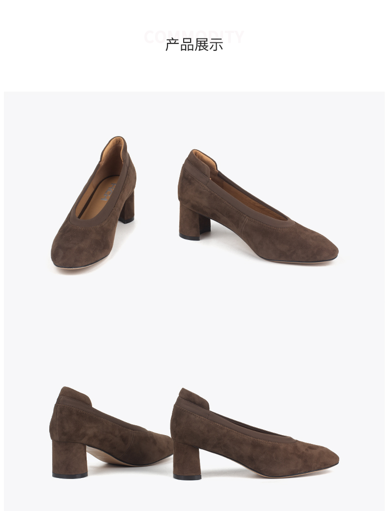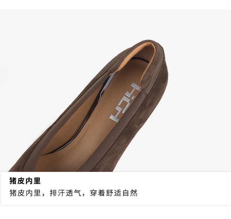 和诚行 2023秋冬新款通勤浅口中跟单鞋女真皮舒适透气单鞋1360034