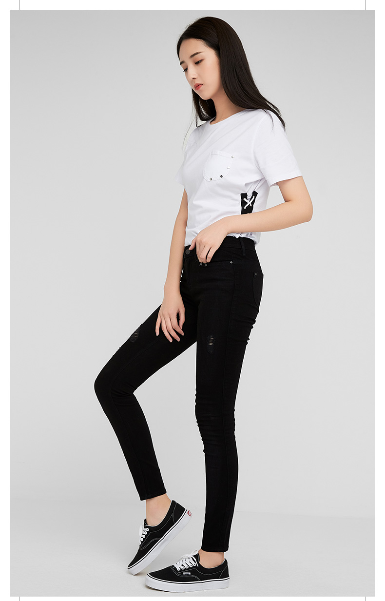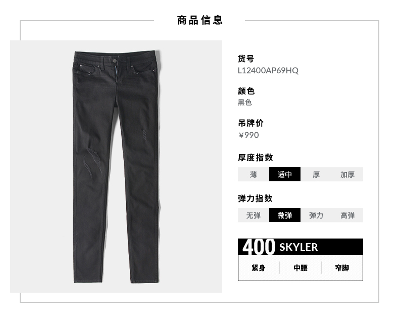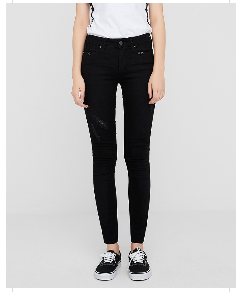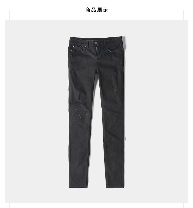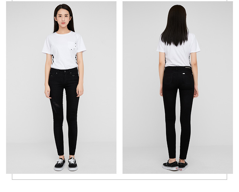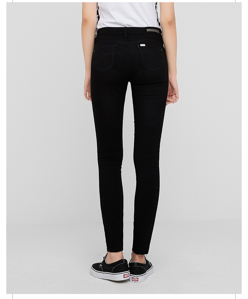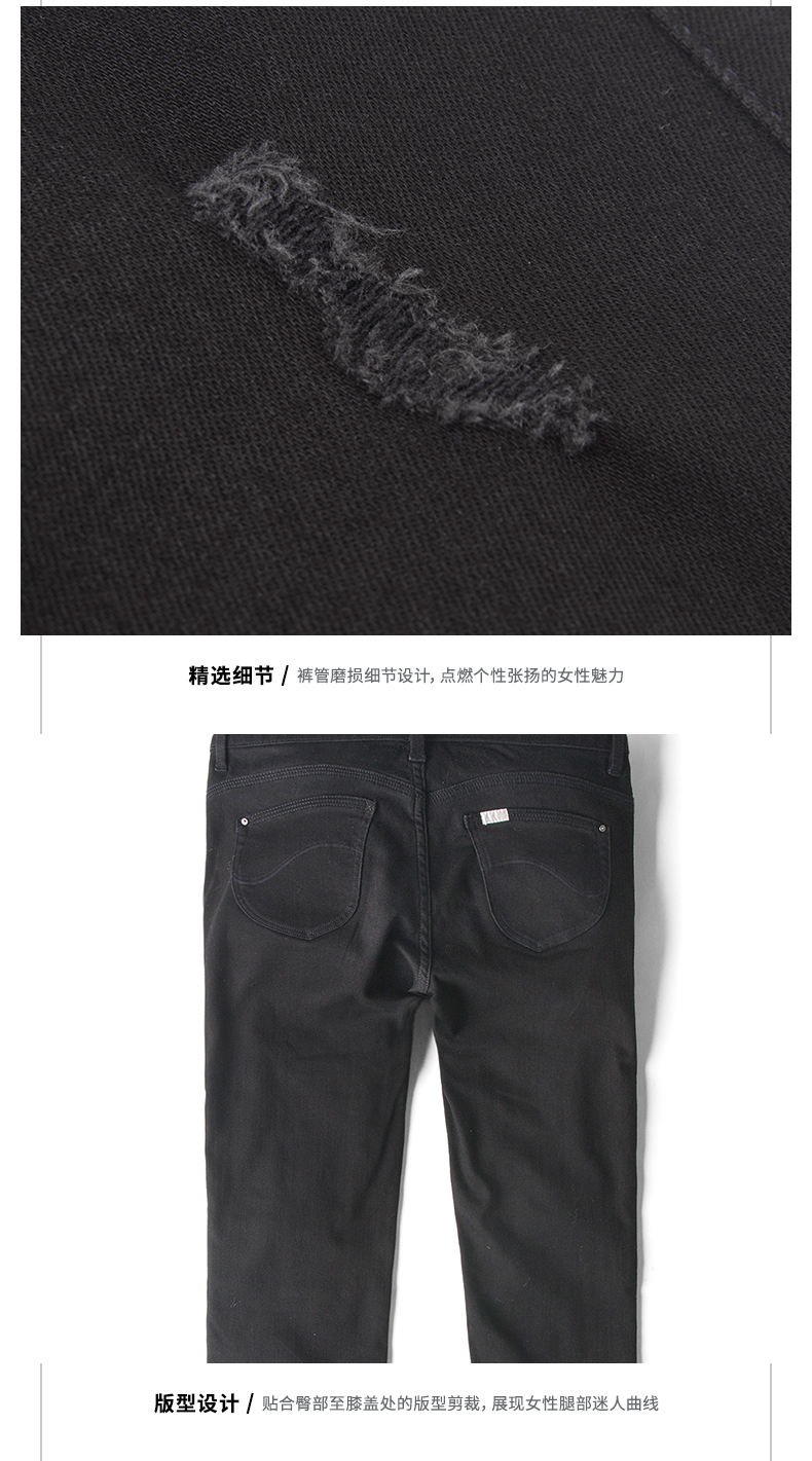 Lee商场同款女款黑色贴身小脚破洞时尚牛仔裤L12400AP69HQ